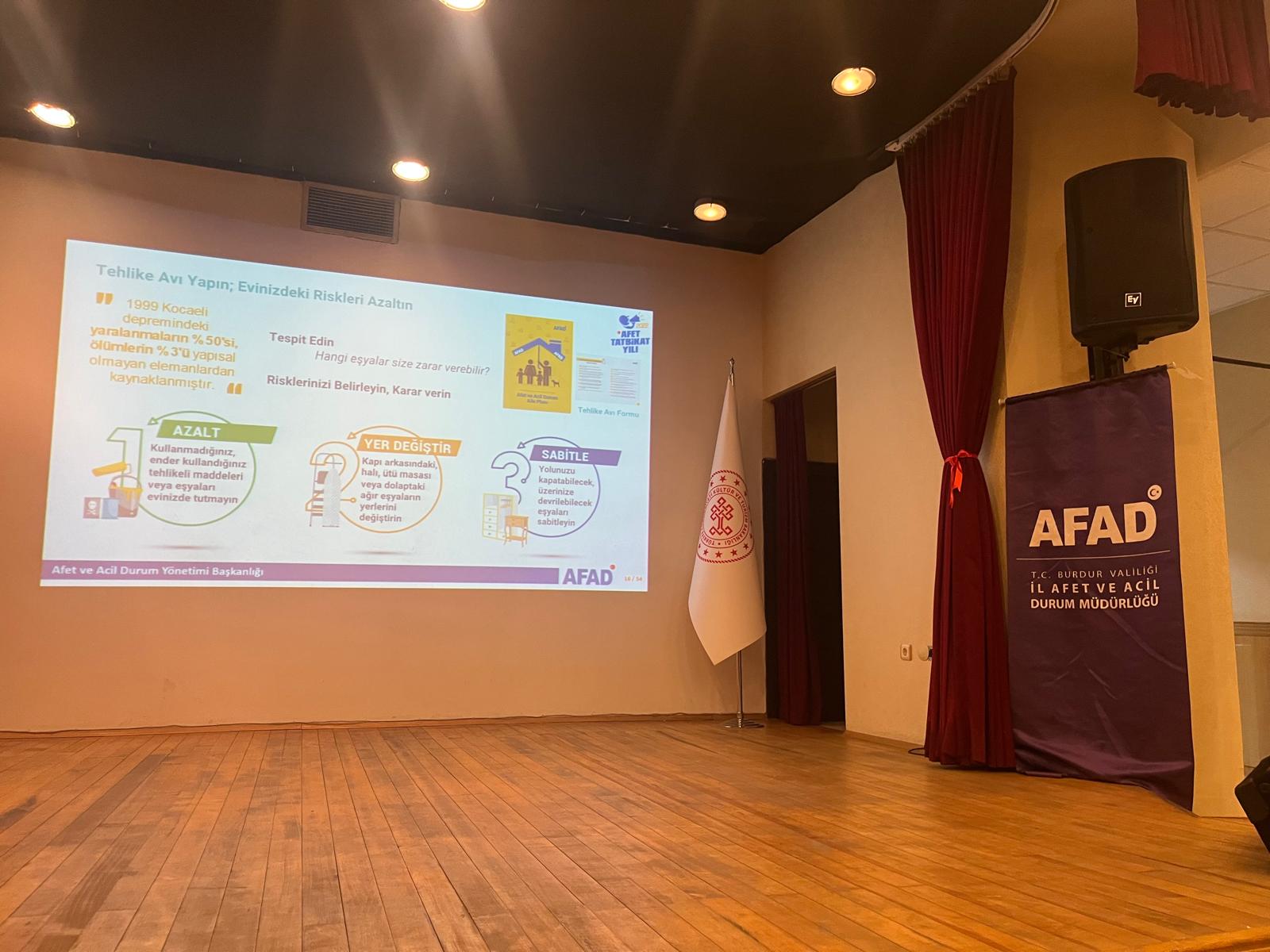 AFAD Burdur İl Müdürlüğü tarafından, Burdur Müze Müdürlüğü personeline yönelik Afet Farkındalık Eğitimi düzenlendi.