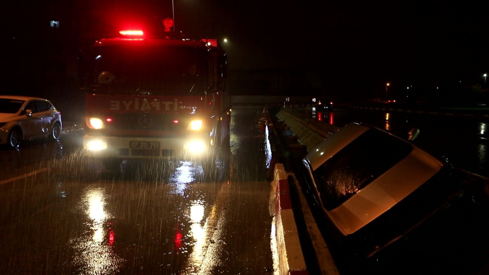 Kaza, saat 00.30 sıralarında Kepez ilçesi Habipler Mahallesi Elmalılı Hamdi Yazır Caddesi üzerinde meydana geldi. Edinilen bilgiye göre, İbrahim S.'nin kullandığı 07 LOVZ 25 plakalı otomobil, yağış nedeniyle kayganlaşan yolda kontrolden çıkarak refüje çarpıp yağmur suyu tahliye kanalına uçtu. Sürücü İbrahim S. çevredeki vatandaşlar tarafından araçtan çıkarılırken, ihbar üzerine olay yerine polis, sağlık ve itfaiye ekipleri sevk edildi. Kazayı yara almadan atlatan otomobil sürücüsü, sağlık ekiplerine durumunun iyi olduğunu belirterek, hastaneye gitmek istemediğini söyledi. Otomobil vinç yardımıyla kanaldan çıkarılarak çekiciye yüklenirken, kazayla ilgili inceleme başlatıldı.