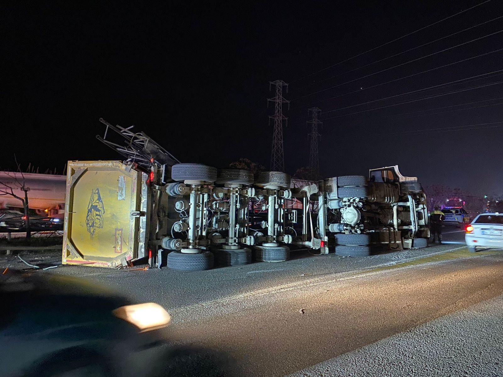 Antalya’nın Serik ilçesinde dorsesi EDS sisteminin bulunduğu direğe çarpan tır devrildi. Kopan demirler, kamyonun kupasına ve otomobile çarptı. Kazada 1’i ağır 2 kişi yaralandı.