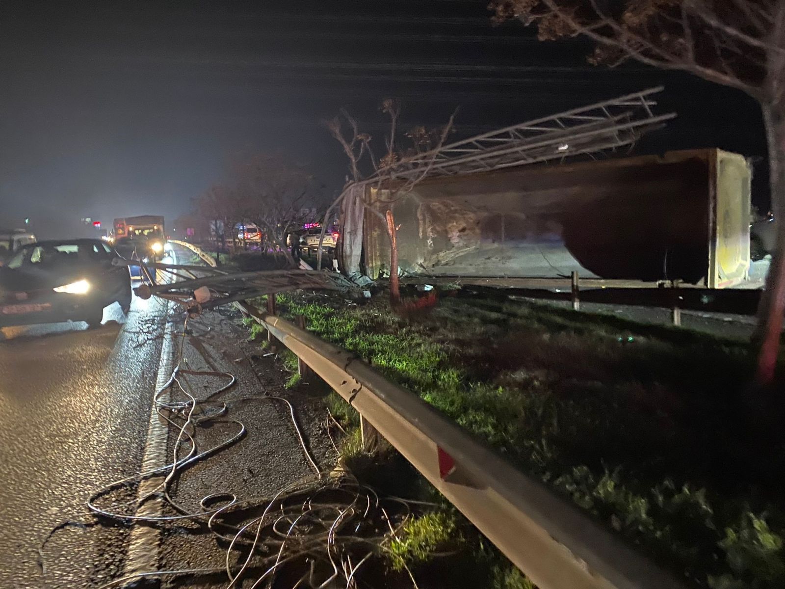 Otomobilde yolcu olarak bulunan Mehmet Dönmez, "Biz yolda giderken bir anda üzerimize EDS direği devrildi. O esnada geçen kamyonu biçti. Kamyon olmasa bizim arabayı biçecekti. Kaza anında çok büyük korku ve panik yaşadık" diye konuştu.