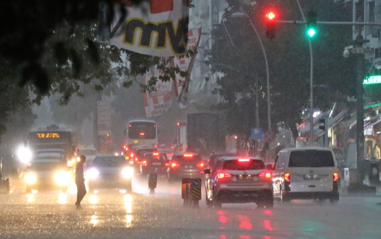 Meteoroloji Genel Müdürlüğünün sarı alarmla uyardığı iller arasında yer alan turizm kenti Antalya’da öğleden sonra bastıran sağanak, yaşamı olumsuz etkiledi. Akşam saatlerine doğru etkisini daha da arttıran yağış nedeniyle yollar adeta göle döndü, ana arterlerde su birikintileri oluştu. Yağış nedeniyle araç sürücülerinin yanı sıra yayalar da zor anlar yaşadı. Bazı vatandaşlar yağıştan sığınmak için otobüs duraklarını tercih ederken şemsiyesiz yağışa yakalanan vatandaşlar da yakınlardaki iş yerlerine sığındı.