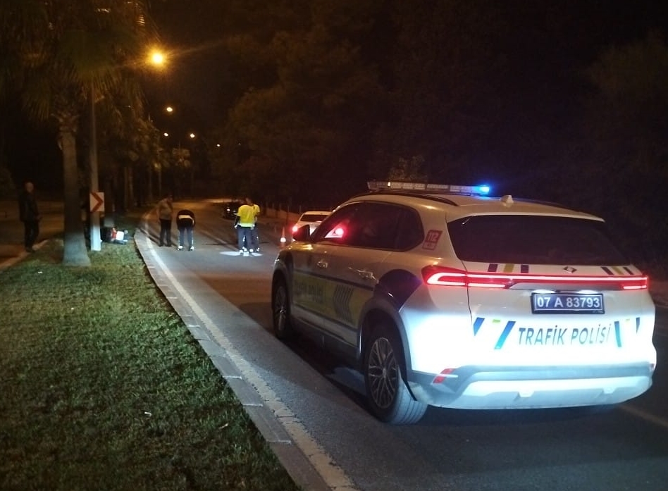 Yusuf Tekatlı'nın (41) kullandığı 07 BPZ 678 plakalı motosiklet, Titreyengöl Caddesi'nde kontrolden çıkarak refüjdeki aydınlatma direğine çarptı.