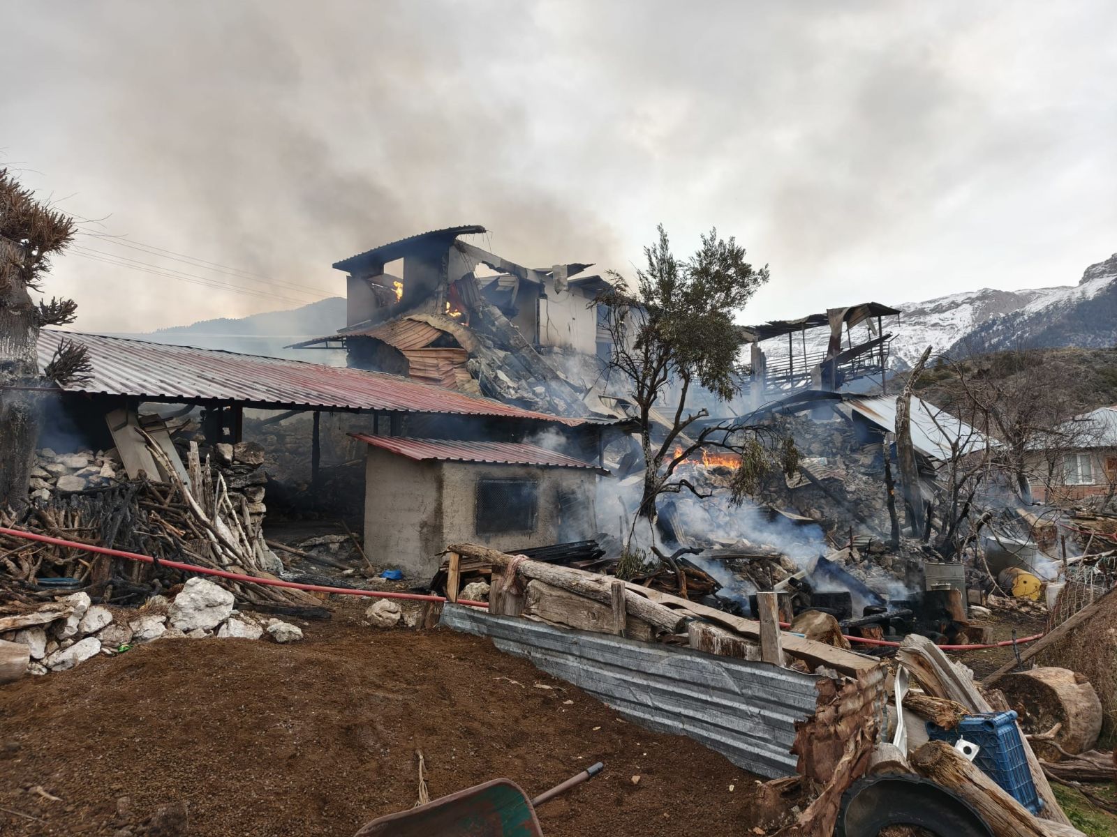 Alt katı ahır olarak kullanılan evin dumanla dolduğunu gören talihsiz kadın, hayvanlarını kurtarmak için içeri girdiğinde acı manzarayla karşılaştı. Ahırdaki 3 inek telef olduğunu gören anne, ahırın yan tarafındaki diğer hayvanları kendi çabasıyla dışarı çıkarmayı başardı. Dumandan etkilenen Doyduk Y., olay yerine gelen ambulansla hastaneye sevk edildi.