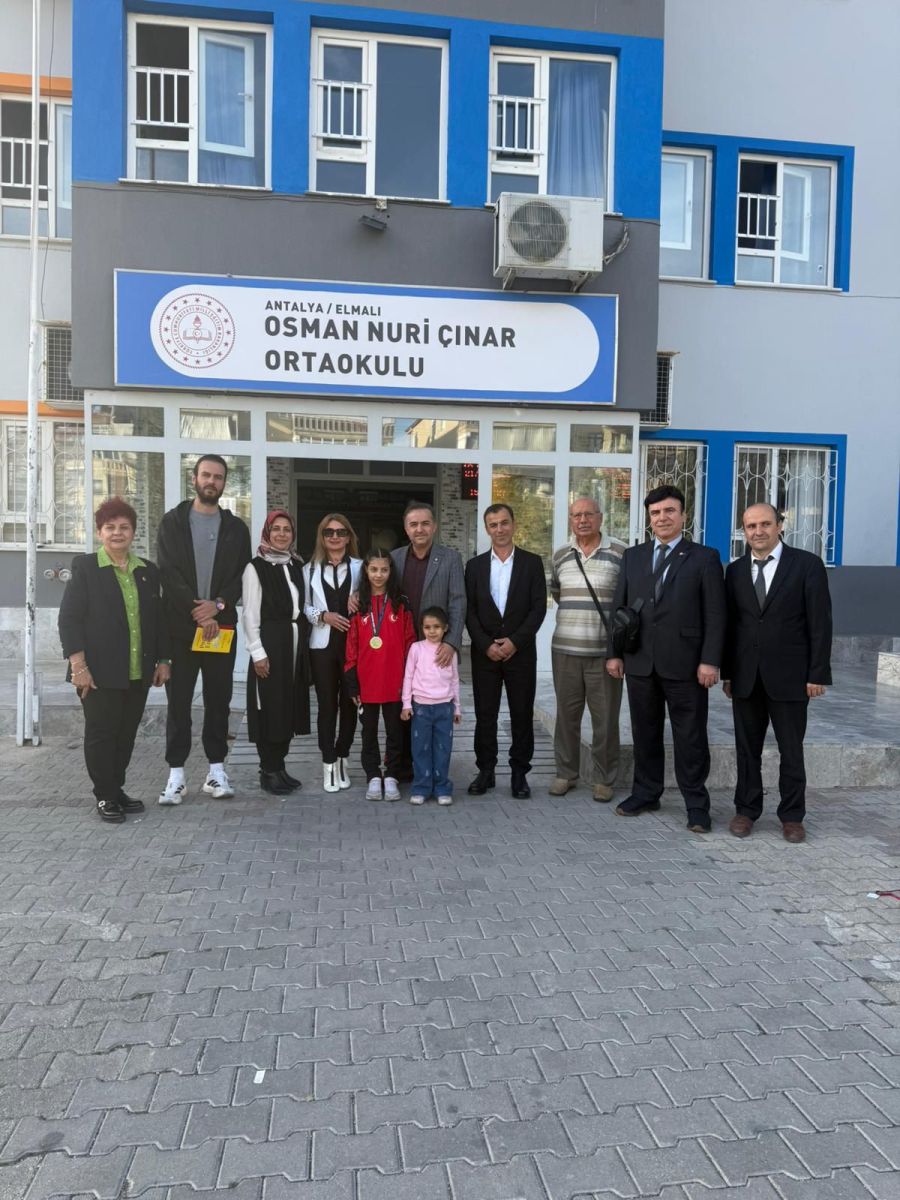 Elmalı Osman Nuri Çınar Ortaokulu, Avrupa Yıldızlar Tekvando Şampiyonası’nda 29 kiloda birincilik elde eden genç sporcu İpek Özmen’in başarısını kutlamak maksadı ile ödül töreni düzenledi. Tören, Antalya Elmalı’da Osman Nuri Çınar Ortaokulu bahçesinde geçtiğimiz Cuma günü son ders zili sonrasında okul bahçesinde gerçekleşti.