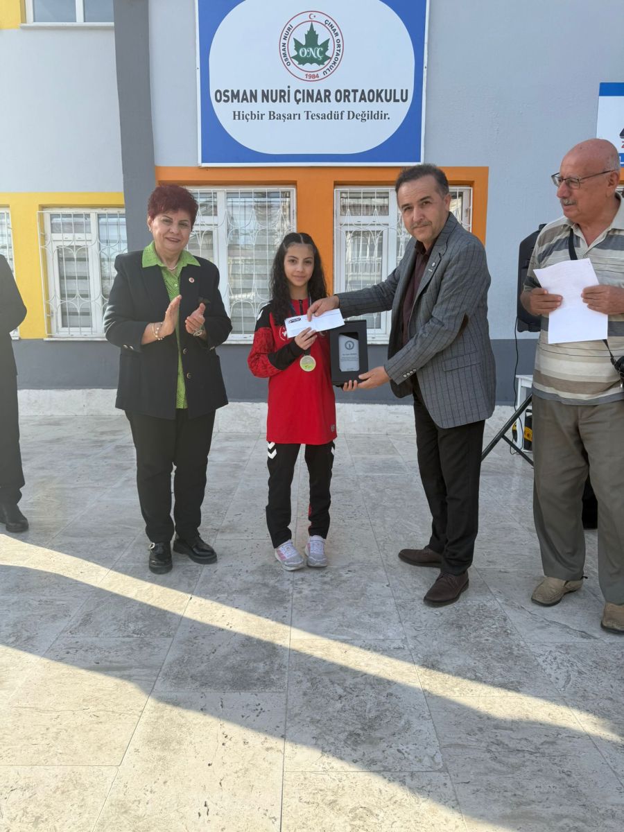 Programın ilk bölümünde Okul Müdürü Yunus Şanar, genç sporcu İpek Özmen’e ve Antrenör Berk Can Süngü’ye plaket takdim etti. Akabinde merkezi Antalya’da bulunan Bucak Kültür Dayanışma ve Yardımlaşma Derneği Başkanı Enver Yiğit, genç sporcuya dernek adına özel ödül ve plaket sundu.