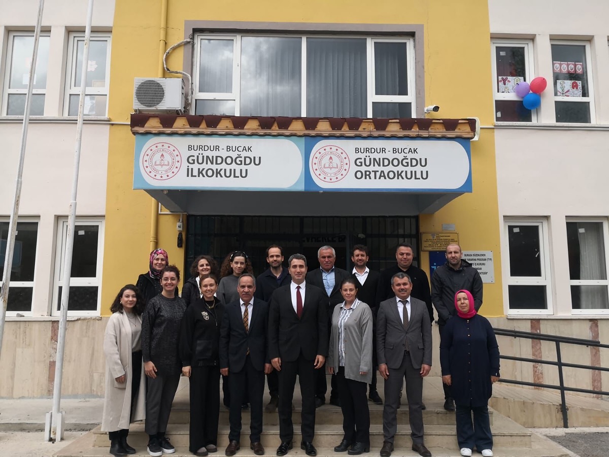 Bucak Kaymakamı Can Kazım Kuruca, İlçe Milli Eğitim Müdürü Bekir Canavar ve Gündoğdu Köyü Muhtarı Cemal Çiçen ile birlikte Gündoğdu Ortaokulu ve İlkokulunu ziyaret etti.