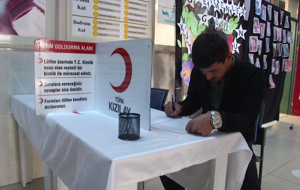 Ertuğrul Gazi Ortaokulu'nda gerçekleştirilen kampanyada vatandaşlar, kan bağışında bulundu.
