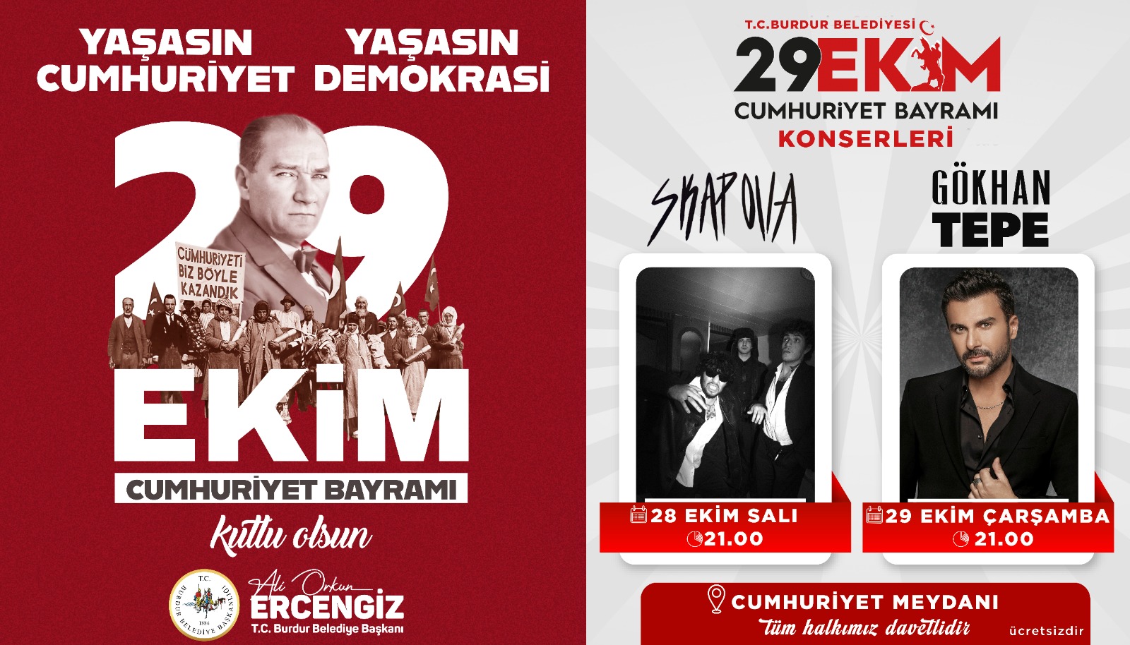 BURDUR BELEDİYESİ’NDEN BÜYÜK CUMHURİYET COŞKUSU: GÖKHAN TEPE SAHNE ALACAK