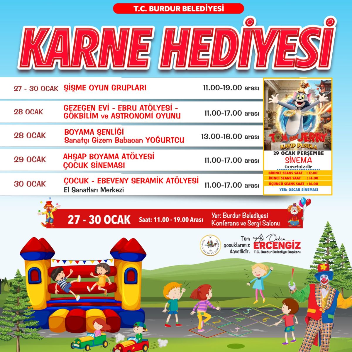 Burdur Belediye Başkanı Ali Orkun Ercengiz’in davetiyle düzenlenen etkinliklere tüm çocukların katılımı bekleniyor. Belediye yetkilileri, yarıyıl tatilinde çocukların hem eğlenmesi hem de sosyal ve sanatsal faaliyetlere katılması için programın herkese açık olduğunu belirtti.