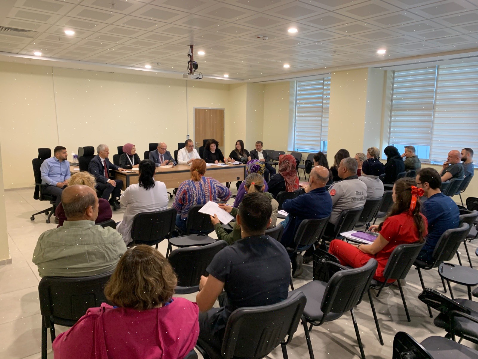 Başhekim Opr. Dr. Murat Yüksel başkanlığında, hastane yönetimi ve komite üyelerinin katılımıyla yapılan toplantı, hastanenin eğitim salonunda düzenlendi.