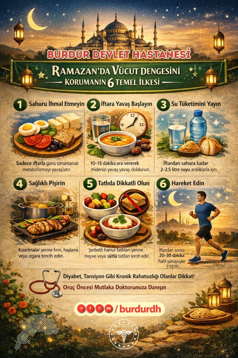 BURDUR DEVLET HASTANESİ’NDEN RAMAZAN’DA VÜCUT DENGESİNİ KORUMAK İÇİN 6 TEMEL İLKE