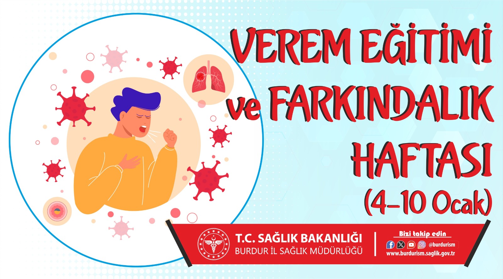 Burdur İl Sağlık Müdürlüğü, Verem Eğitim ve Farkındalık Haftası kapsamında vatandaşları bilinçli olmaya, belirtiler konusunda duyarlı davranmaya ve erken tanının önemini unutmamaya davet etti.