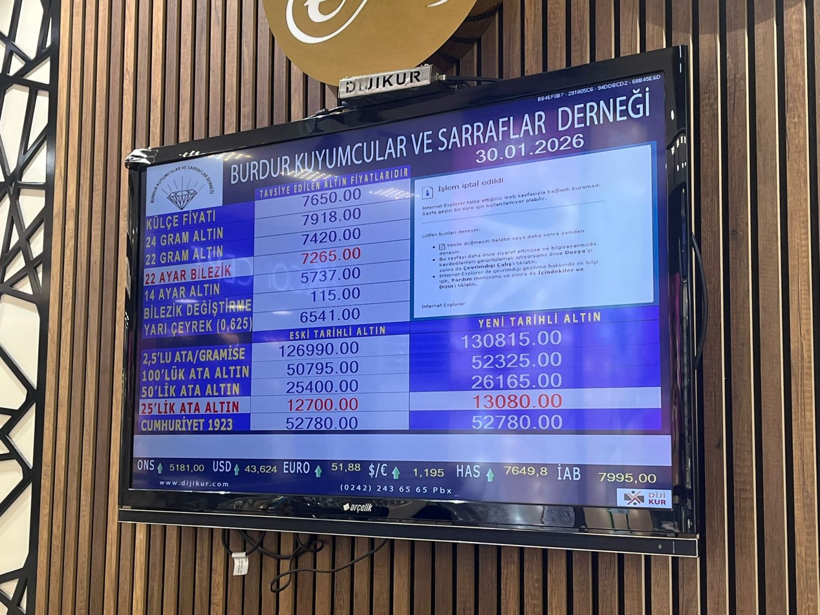 Burdur Kuyumcular ve Sarraflar Derneği tarafından 30 Ocak 2026 Cuma günü saat 09.00 itibarıyla güncel altın fiyatları şu şekilde: