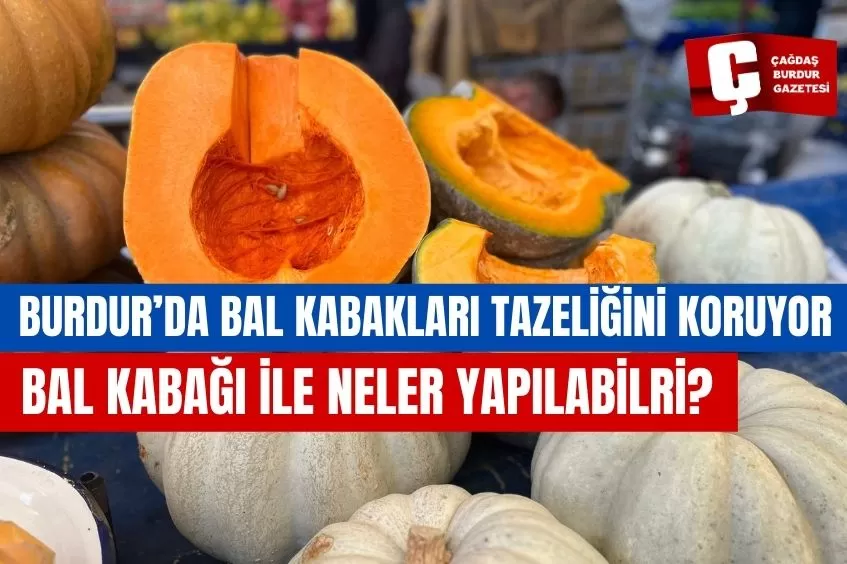 Kış mevsiminin gelmesiyle bal kabakları bütün ve dilimlenmiş halde Burdur pazarlarında yerini aldı.