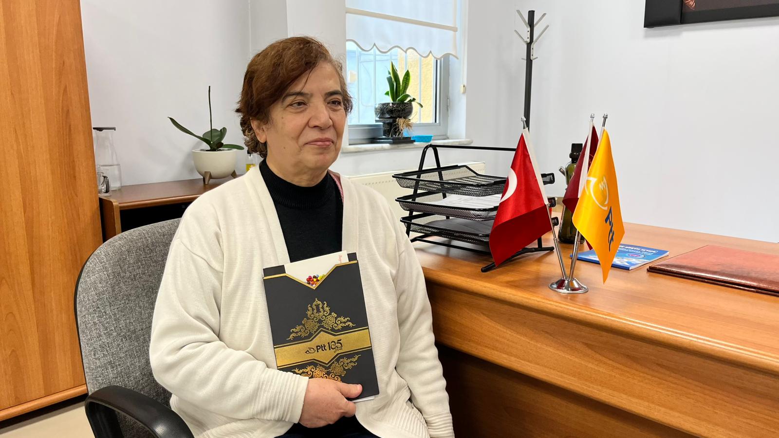 PTT'nin kuruluş yıl dönümüyle aynı rakamları taşıyan 185 gişe numarasını alan Nazire Kök’e Başmüdür Mustafa Ölmez tarafından PTT pul serisi olan bir albüm hediye edildi.
