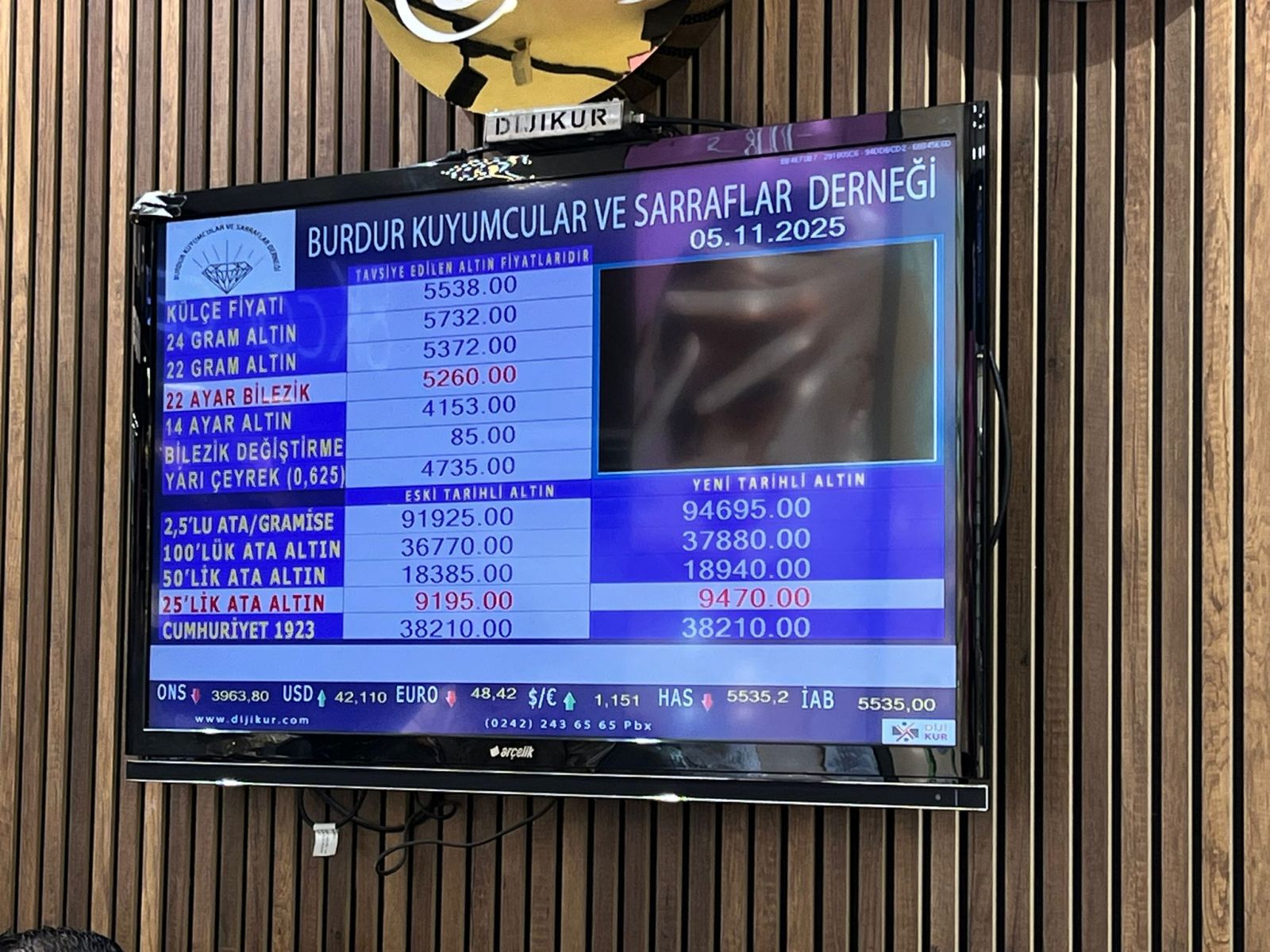 Burdur Kuyumcular ve Sarraflar Derneği, 5 Kasım 2025 Çarşamba günü saat 09.00 itibarıyla güncel altın fiyatlarını duyurdu.