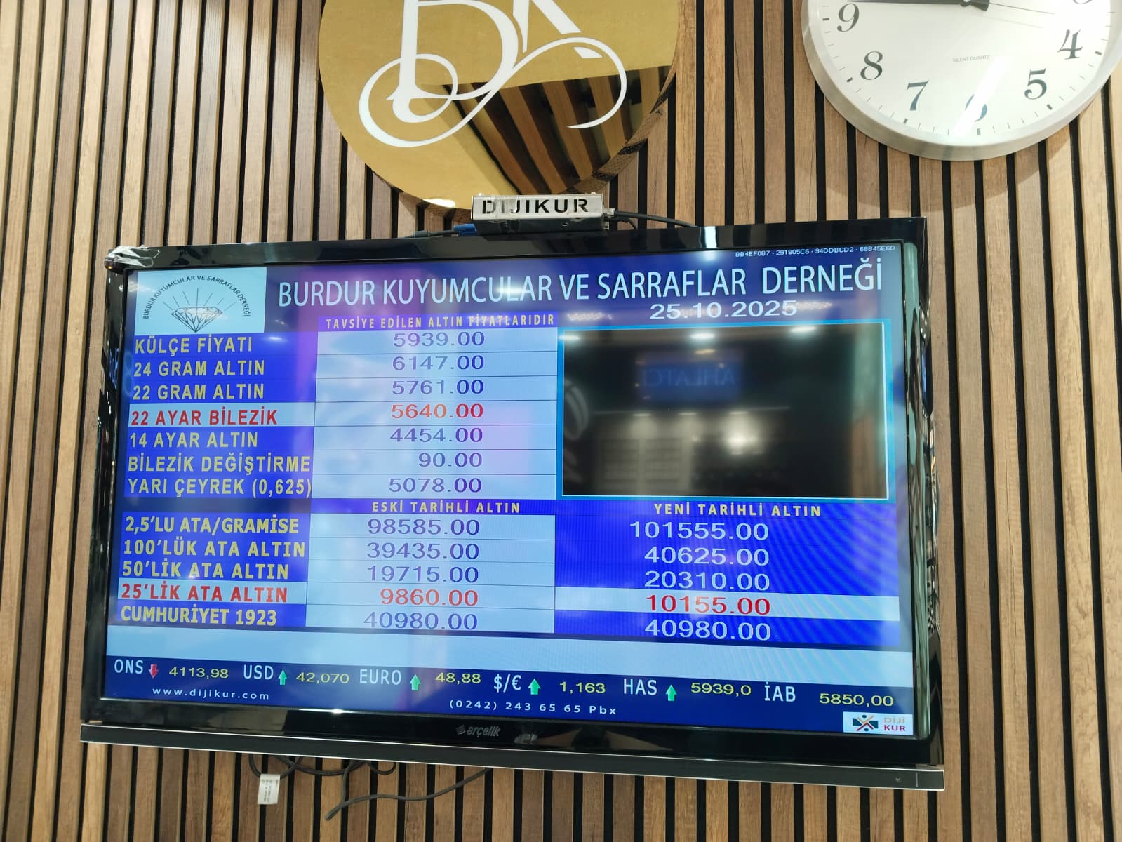 Burdur Kuyumcular ve Sarraflar Derneği tarafından 25 Ekim Cumartesi günü saat 10:00 itibarıyla güncel altın fiyatları şu şekilde: