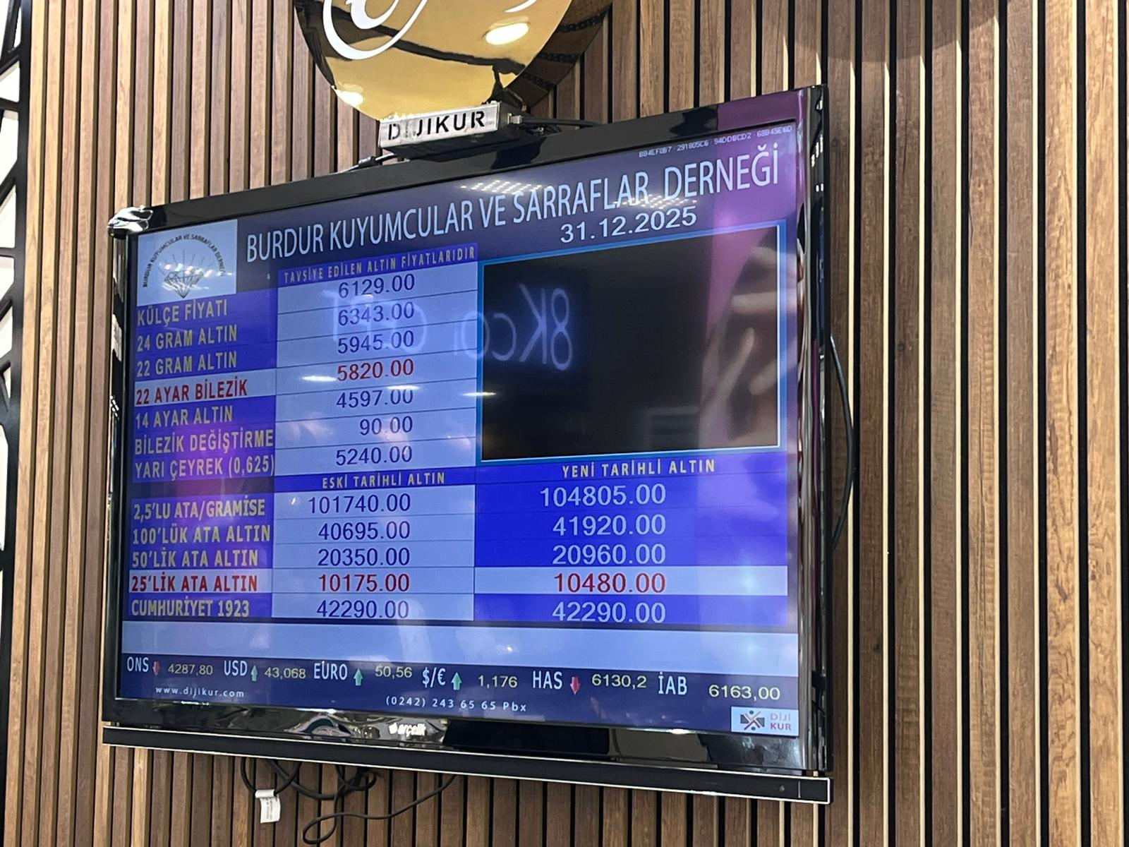 Burdur Kuyumcular ve Sarraflar Derneği tarafından 31 Aralık 2025 Çarşamba günü saat 09.00 itibarıyla güncel altın fiyatları şu şekilde:
