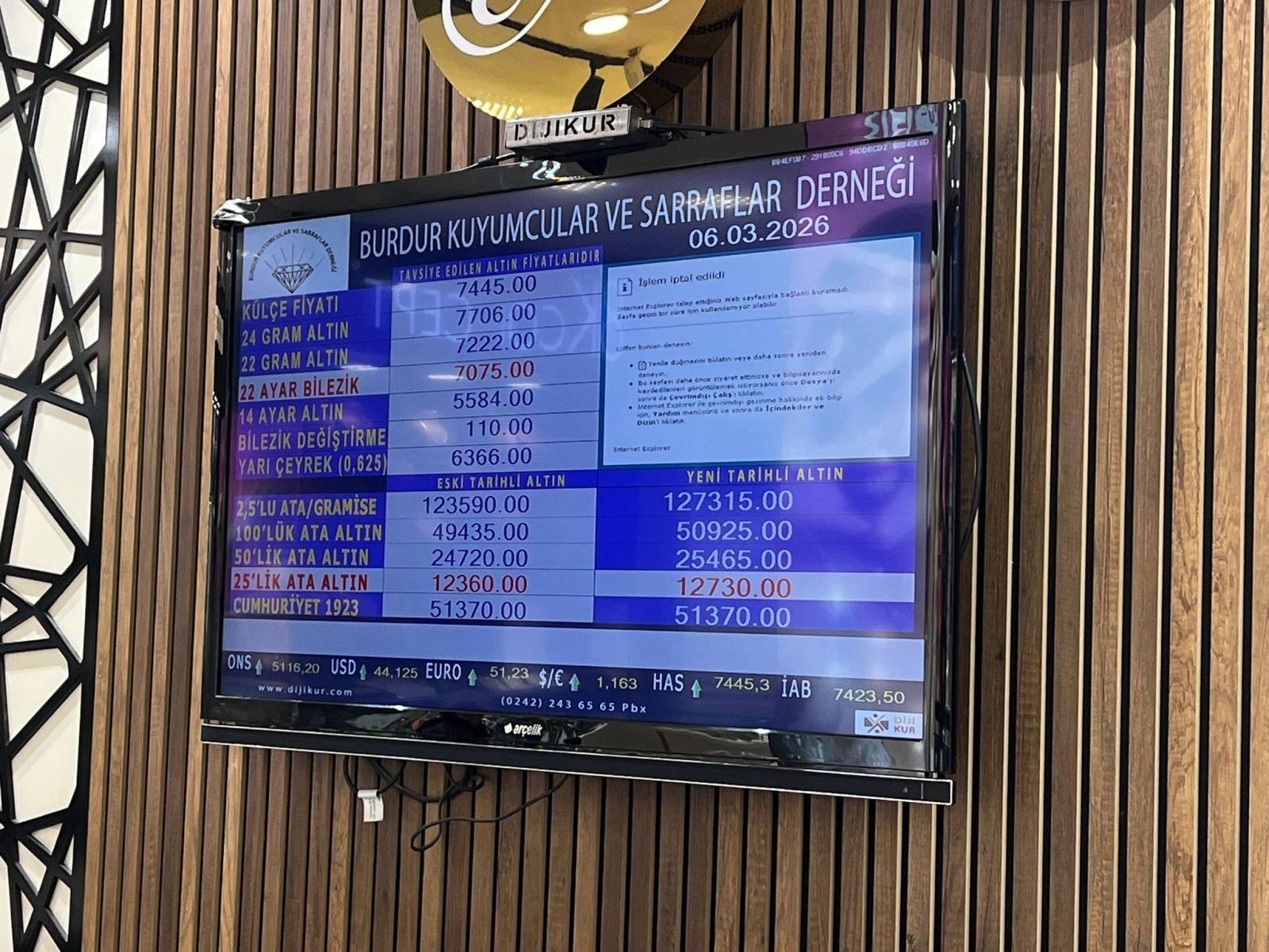 Burdur Kuyumcular ve Sarraflar Derneği tarafından 6 Mart 2026 Cuma günü saat 09.00 itibarıyla güncel altın fiyatları şu şekilde:
