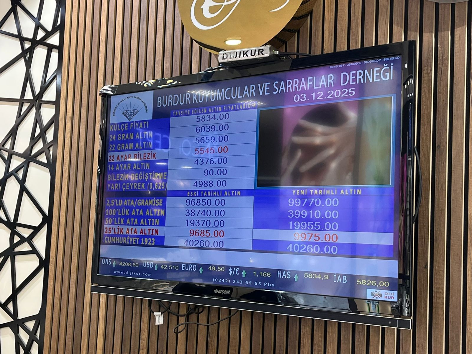 Burdur Kuyumcular ve Sarraflar Derneği tarafından 3 Aralık 2025 Çarşamba günü saat 09.00 itibarıyla güncel altın fiyatları şu şekilde: