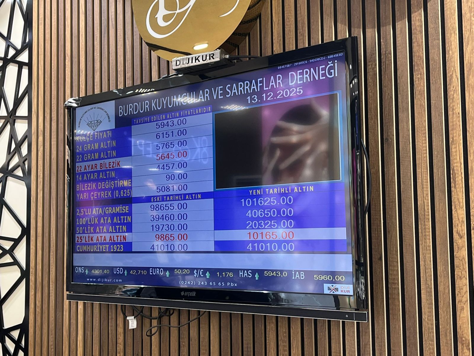 Burdur Kuyumcular ve Sarraflar Derneği tarafından 13 Aralık 2025 Cumartesi günü saat 09.00 itibarıyla güncel altın fiyatları şu şekilde:
