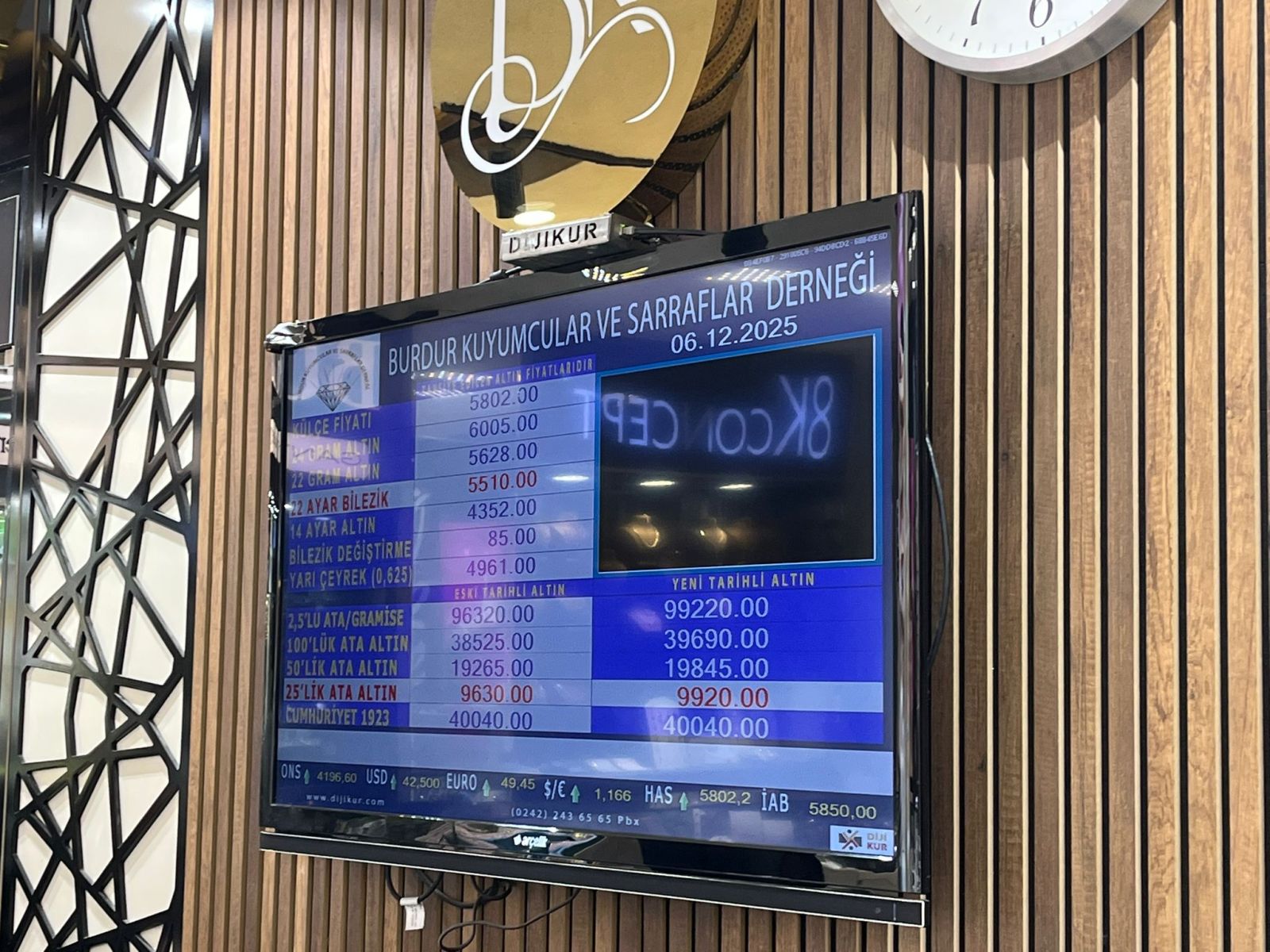 Burdur Kuyumcular ve Sarraflar Derneği tarafından 6 Aralık 2025 Cumartesi günü saat 09.00 itibarıyla güncel altın fiyatları şu şekilde: