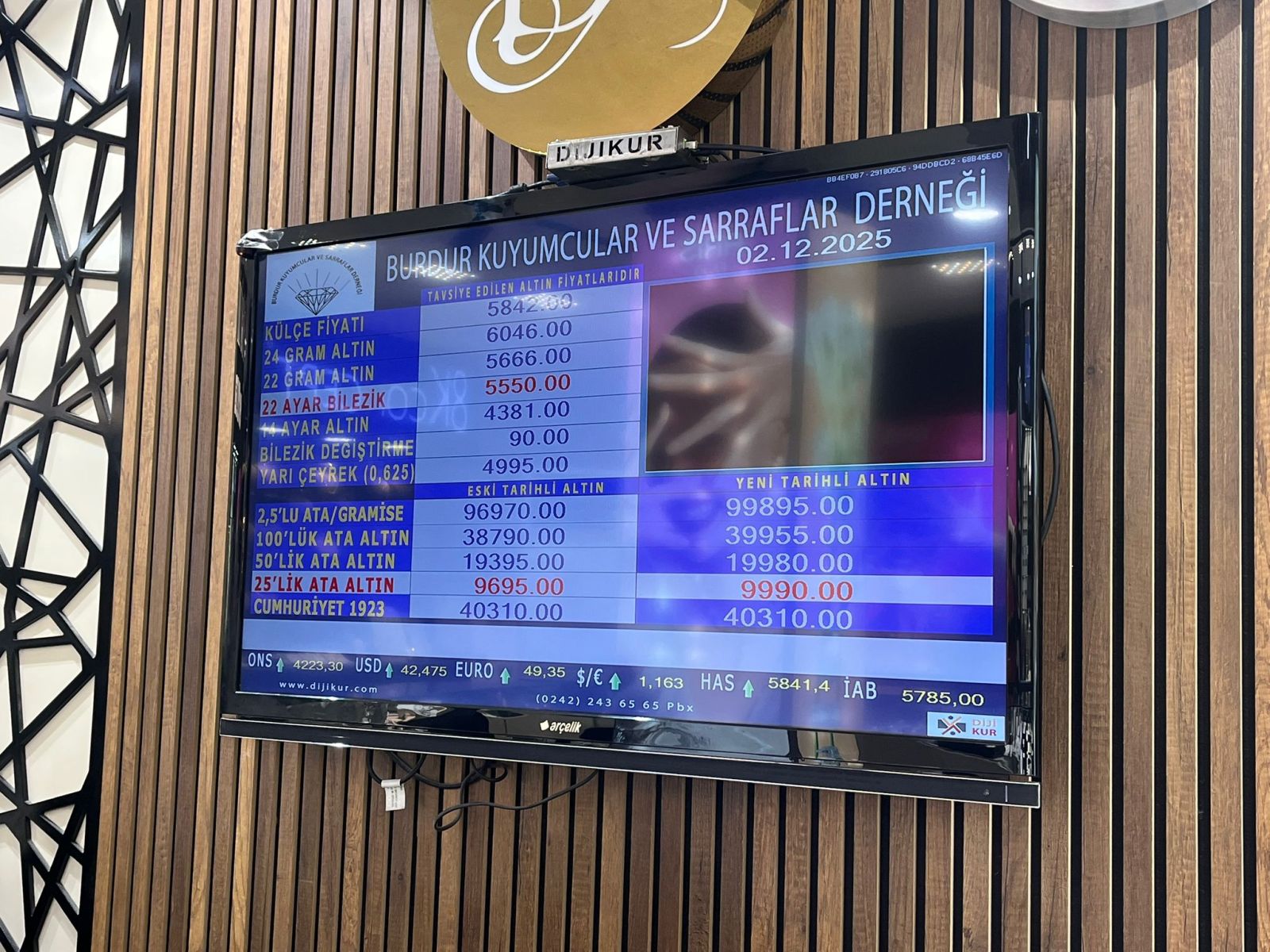 Burdur Kuyumcular ve Sarraflar Derneği tarafından 2 Aralık 2025 Salı günü saat 09.00 itibarıyla güncel altın fiyatları şu şekilde: