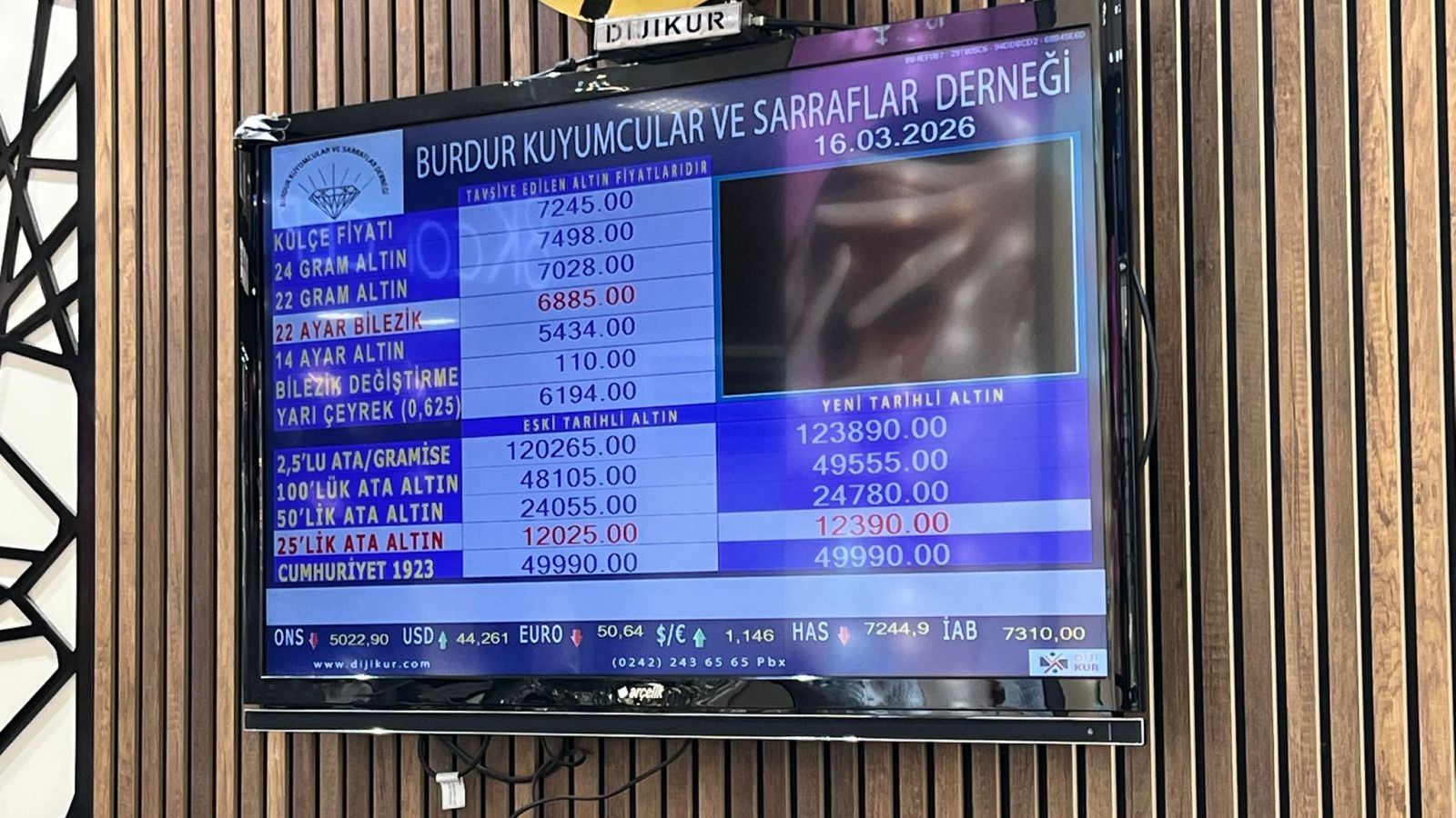 Burdur Kuyumcular ve Sarraflar Derneği tarafından 16 Mart 2026 Pazartesi günü saat 09.00 itibarıyla güncel altın fiyatları şu şekilde: