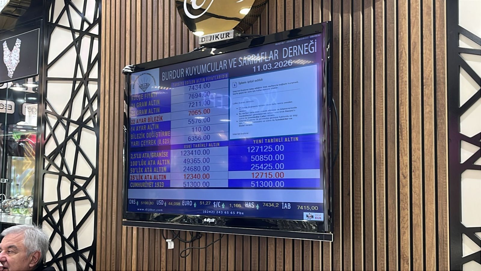 Burdur Kuyumcular ve Sarraflar Derneği tarafından 11 Mart 2026 Çarşamba günü saat 09.00 itibarıyla güncel altın fiyatları şu şekilde: