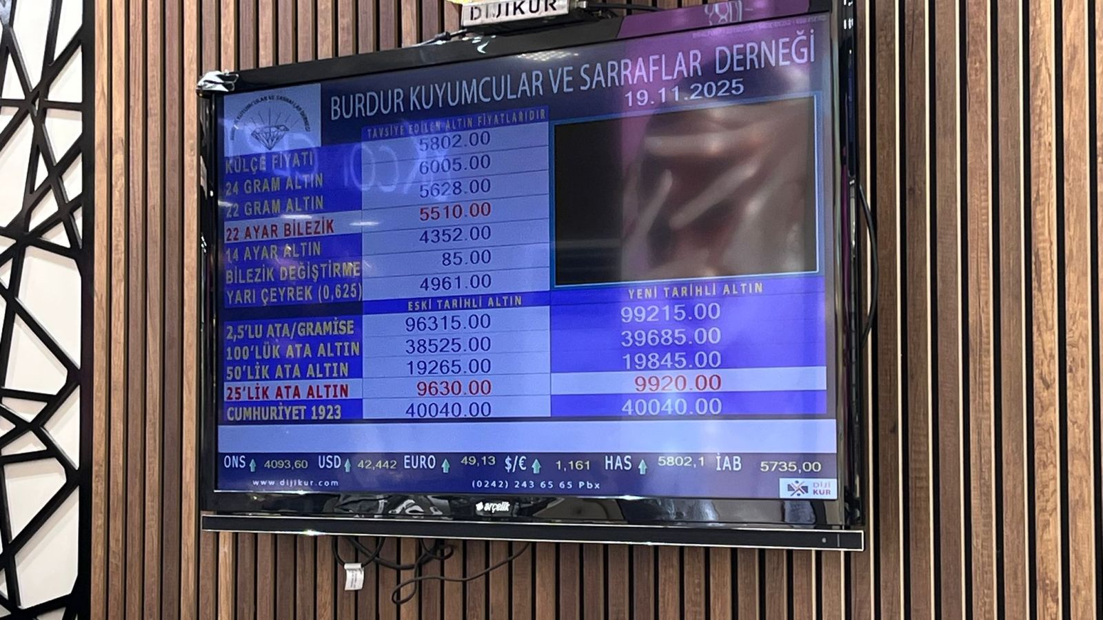 Burdur Kuyumcular ve Sarraflar Derneği, 19 Kasım 2025 Çarşamba günü saat 09.00 itibarıyla güncel altın fiyatlarını duyurdu.