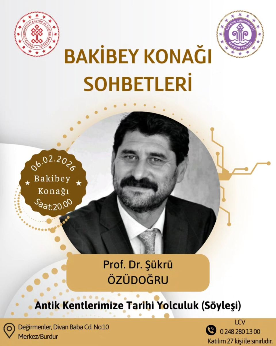 Burdur İl Kültür ve Turizm Müdürlüğü koordinasyonunda düzenlenen etkinlik, 06 Şubat 2026 Cuma günü saat 20.00’de, Bakibey Konağı’nda gerçekleştirilecek. Ücretsiz olarak düzenlenecek söyleşi, tüm vatandaşların katılımına açık olacak.