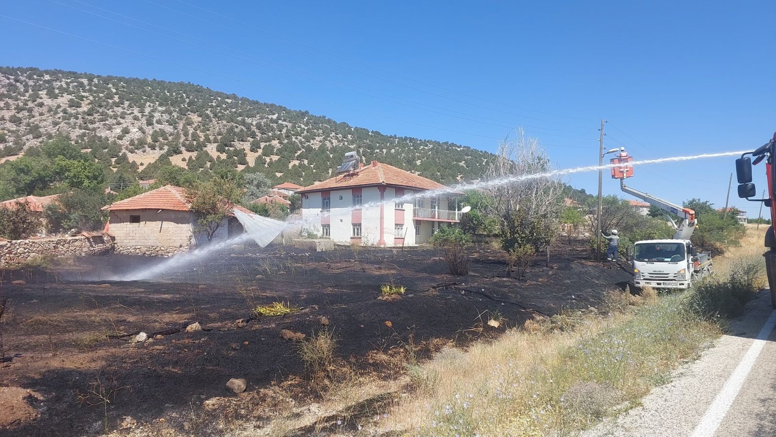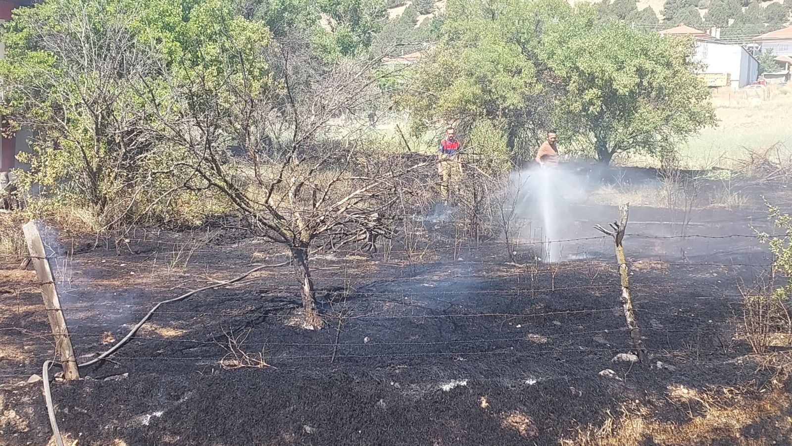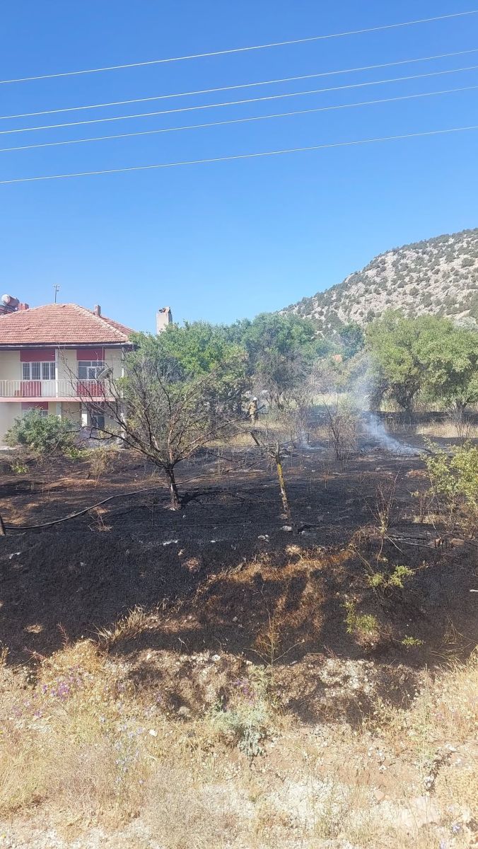 Çaltepe Köyü'nde bir evin bahçesinde çıkan yangın itfaiye ekiplerince söndürüldü