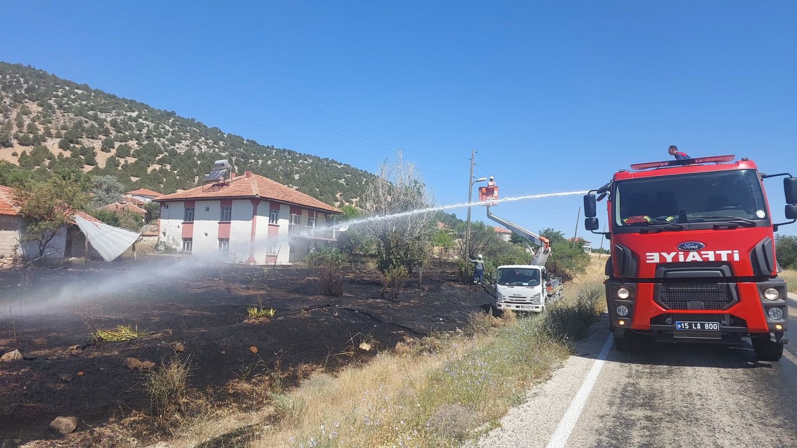 BURDUR'DA BİR EVİN BAHÇESİNDE YANGIN MEYDANA GELDİ