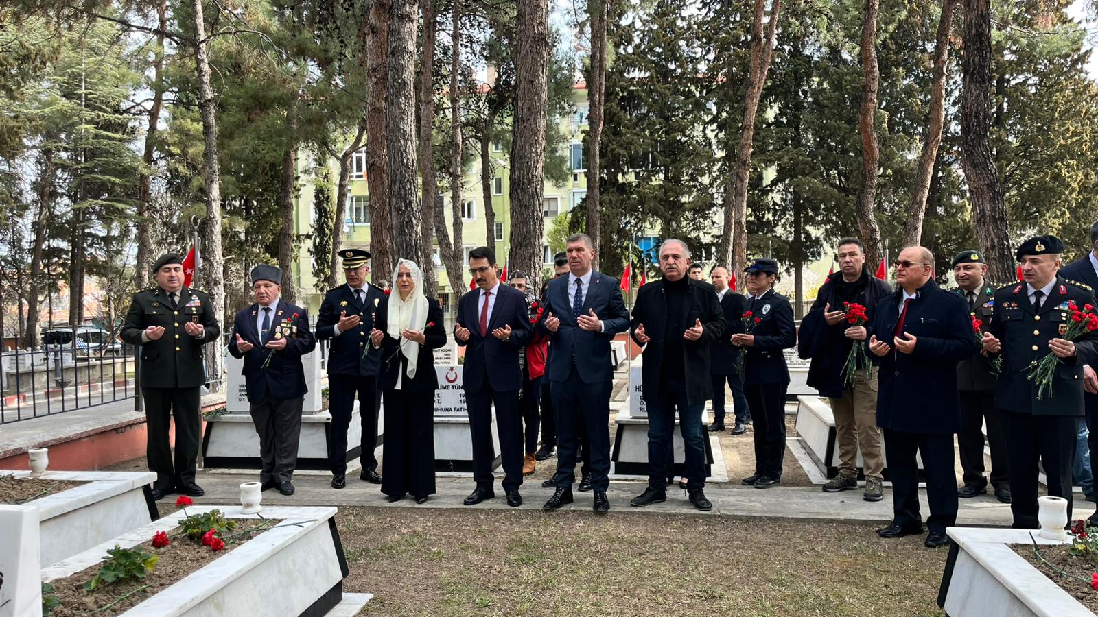 Konuşmanın devamında, Şehit kabirleri ziyaret edilerek karanfil bırakıldı. Kur’an-ı Kerim Tilaveti ve dua edildi.