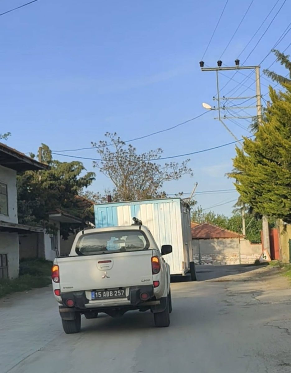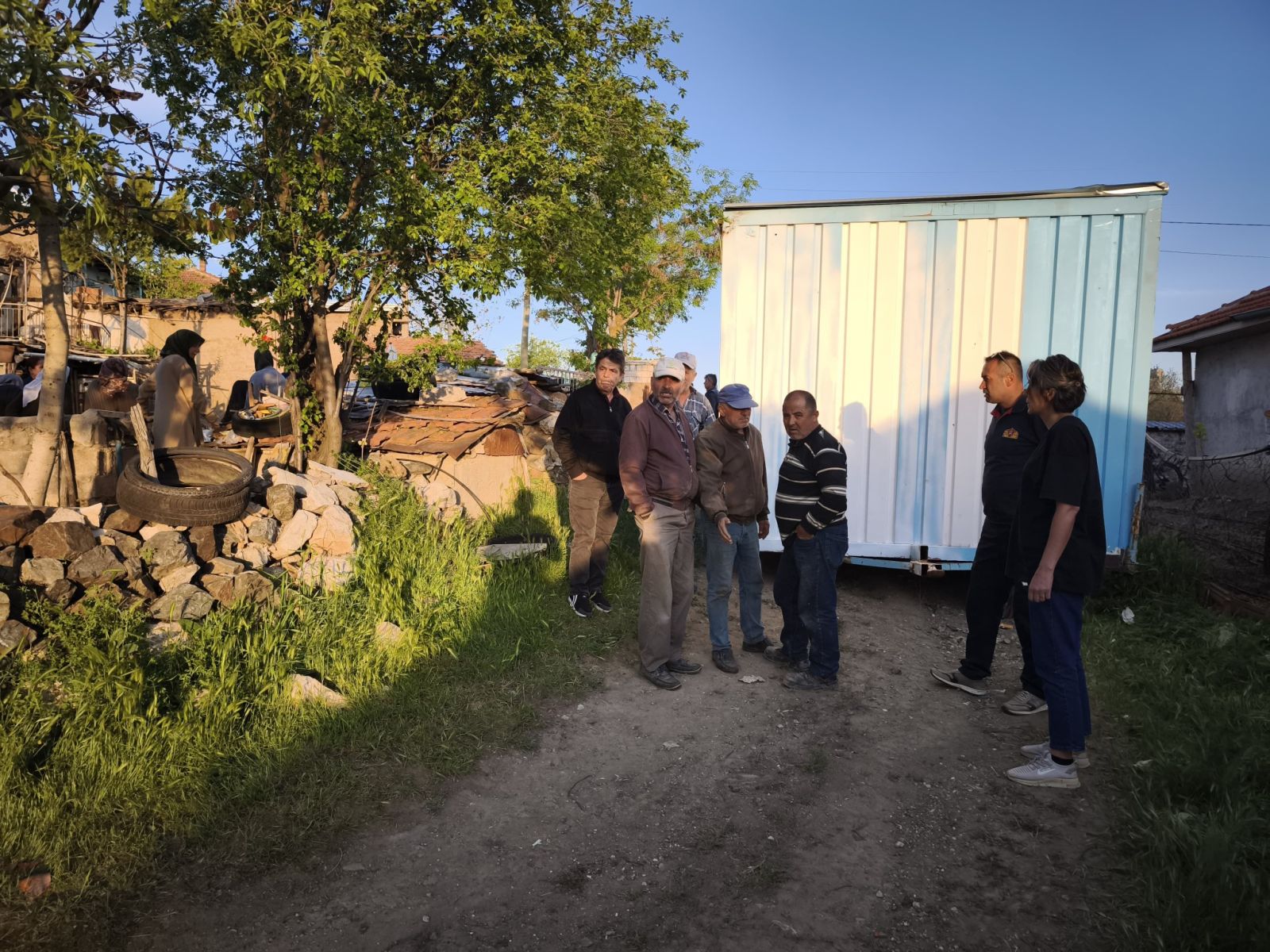 BURDUR'DA EVİ YANAN AİLEYE KONTEYNER YARDIMI YAPILDI