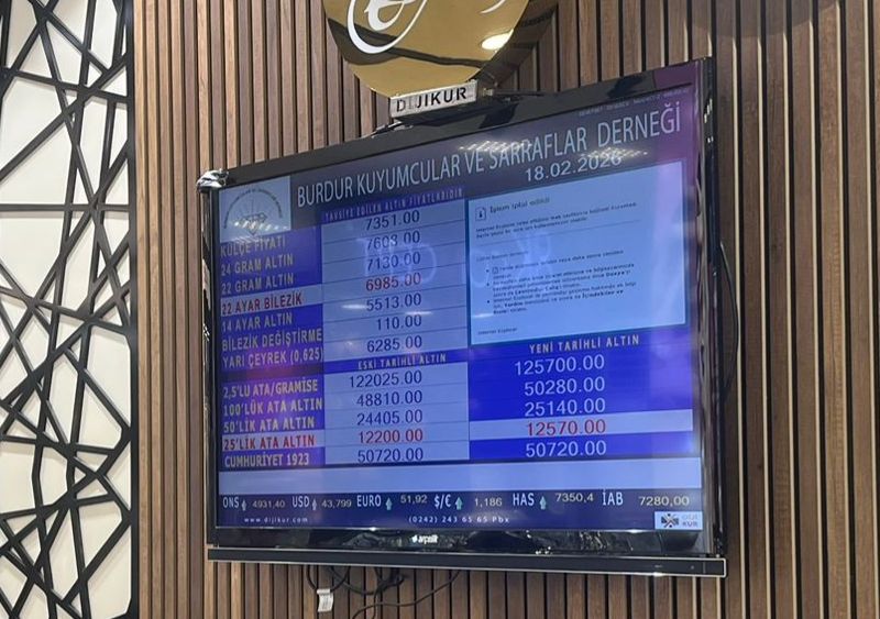 Burdur Kuyumcular ve Sarraflar Derneği tarafından 18 Şubat 2026 Çarşamba günü saat 09.00 itibarıyla güncel altın fiyatları şu şekilde: