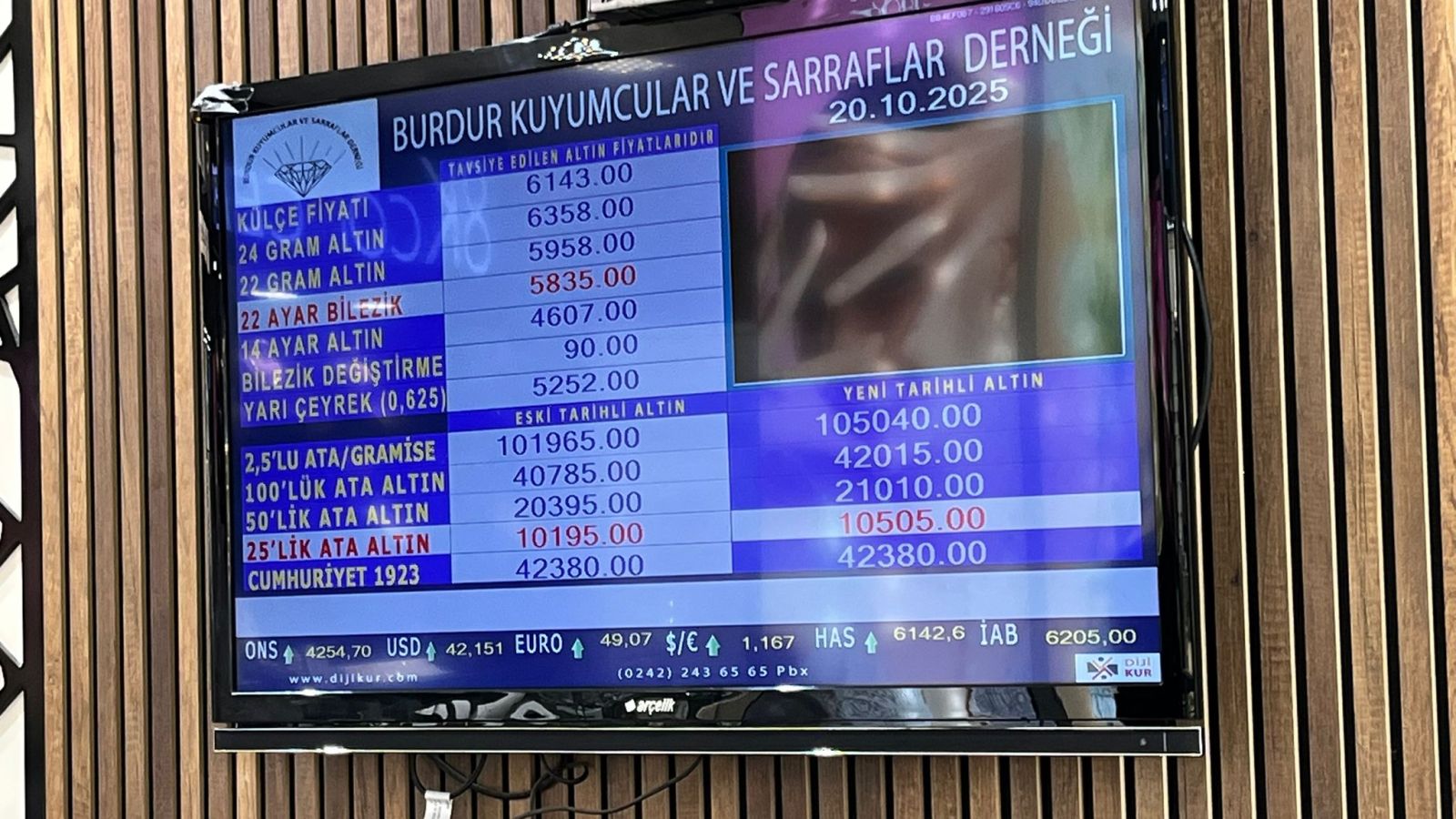 Burdur Kuyumcular ve Sarraflar Derneği tarafından 20 Ekim 2025 Pazartesi günü saat 09.00 itibarıyla açıklanan güncel altın fiyatları belli oldu. Dernek tarafından yayımlanan listeye göre, altın fiyatları geçen haftanın başından itibaren belirgin bir artış gösterdi, ancak bugünkü verilere göre düşüş yaşandı.