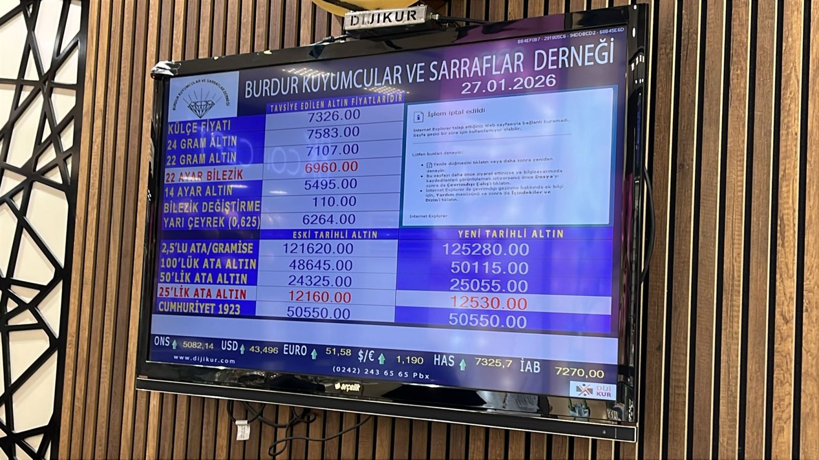 Burdur Kuyumcular ve Sarraflar Derneği tarafından 27 Ocak 2026 Salı günü saat 09.00 itibarıyla güncel altın fiyatları şu şekilde: