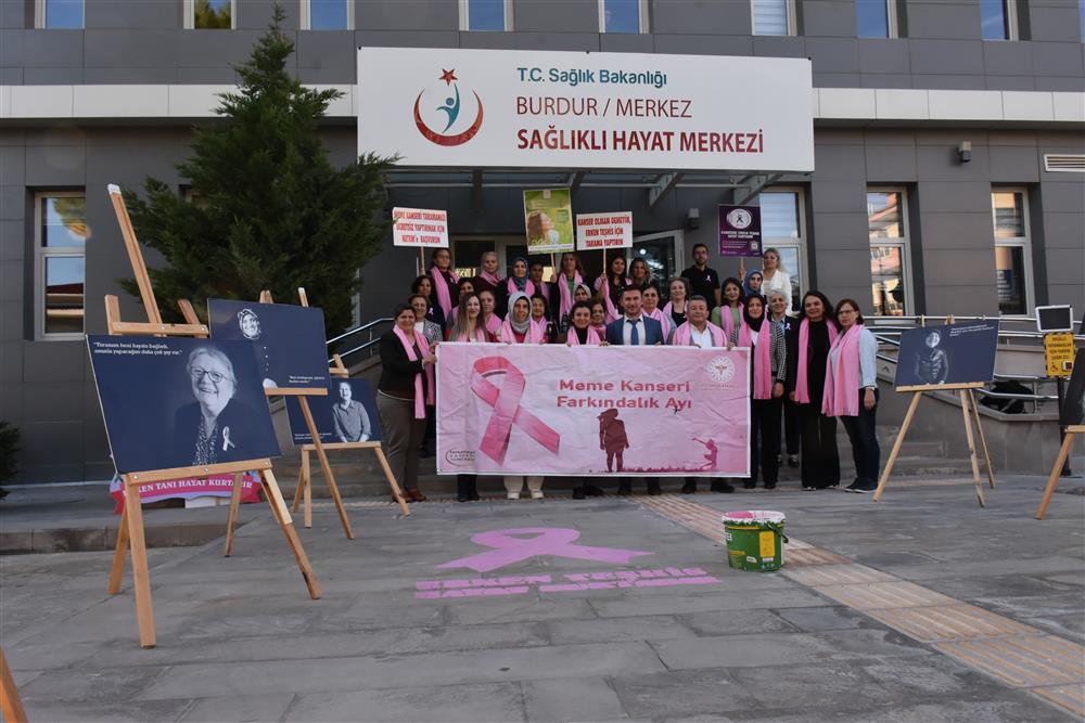 Burdur’da, Ekim ayı kapsamında Meme Kanseri Farkındalık Ayı etkinlikleri çerçevesinde “Pembe Kurdele Boyama Etkinliği” düzenlendi. Halk Sağlığı Hizmetleri Başkanlığı önünde gerçekleştirilen organizasyona, Halk Sağlığı Hizmetleri Başkanı Uzm. Dr. Ayşen Til, Başkan Yardımcısı Dr. Emine Yılmaz Koç, Burdur Devlet Hastanesi Başhekim Yardımcısı Uzm. Dr. Kemal Akpınar, Bucak Devlet Hastanesi Başhekim Yardımcısı Uzm. Dr. Merve Gürsoy Başoğlu, Gölhisar Devlet Hastanesi İdari ve Mali İşler Müdür Yardımcısı Halil Koparal ve KETEM Sorumlu Hekimi Dr. Ela Akarçay Koçak ile Halk Sağlığı personeli katıldı.