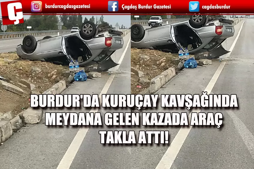 Burdur Kuruçay Kavşağında 30 Eylül 2023 Cumartesi günü sabah saat 09.20 sıralarında kaza meydana geldi. Edinilen bilgiye göre E. G. Yönetimindeki araç sürücünün direksiyon hakimiyetini kaybetmesi üzerine kaldırım taşlarına çarparak yoldan çıkıp devrilerek takla attı. İhbar üzerine olay yerine sağlık ve güvenlik ekipleri sevk edildi. Kazada araç sürücü E. G. Ve araçta yolcu olarak bulunan G.N.H hafif yaralandı.