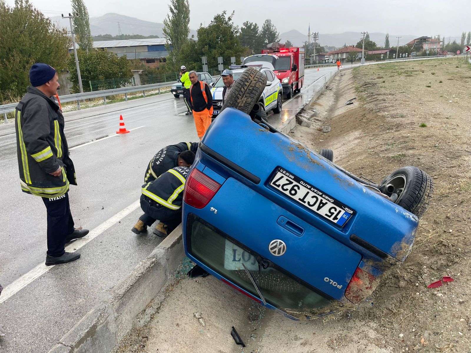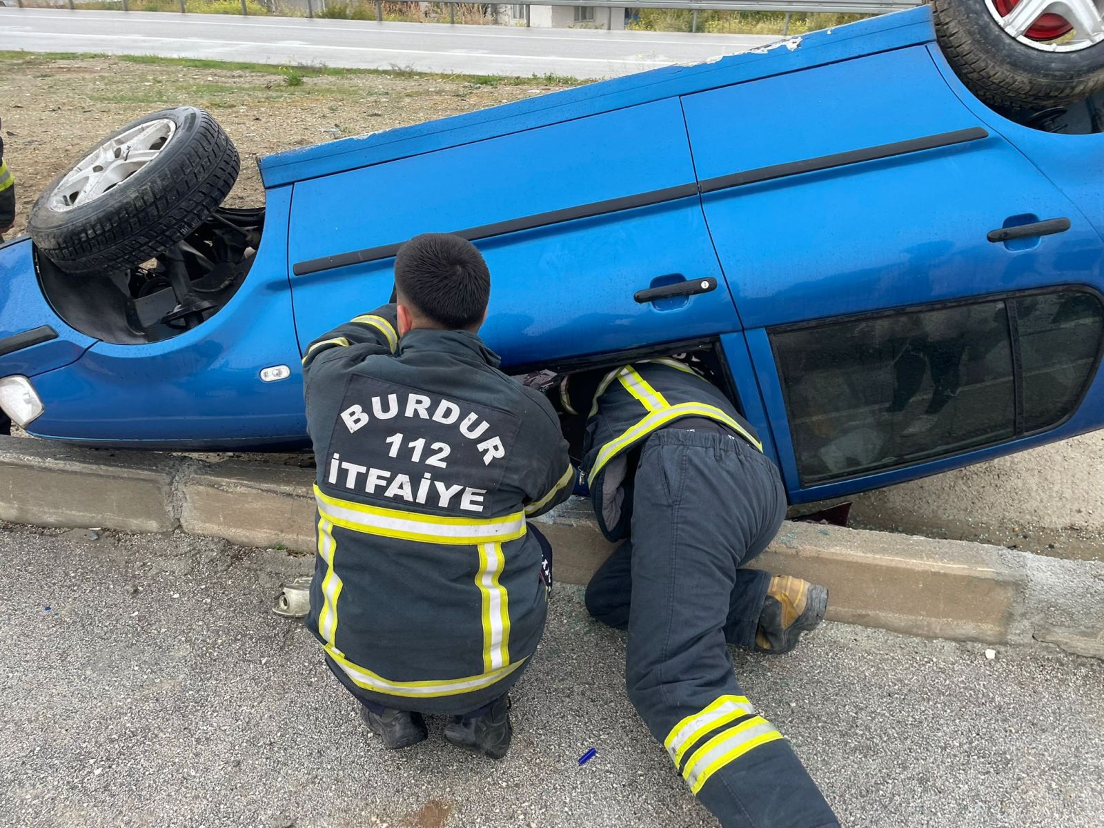 Burdur’da kontrolden çıkan bir otomobil orta refüje devrildi, kazada sürücü yaralandı.