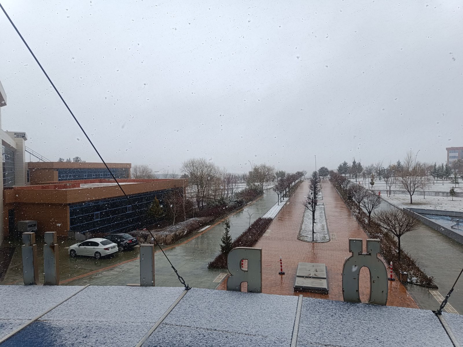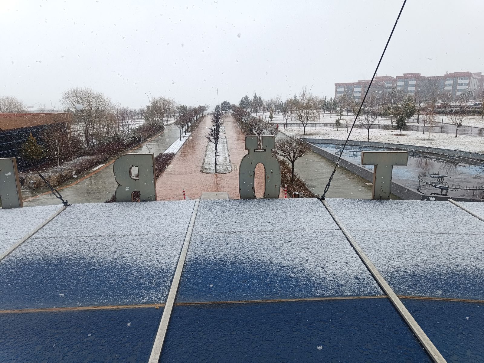 Kent merkezinde hava sıcaklıklarının düşmesinin ardından yüksek kesimlerde başlayan kar, kısa sürede üniversite kampüsünde de etkili oldu. Yağışla birlikte kampüs içerisindeki yeşil alanlar ve araçların üzeri beyaza büründü.