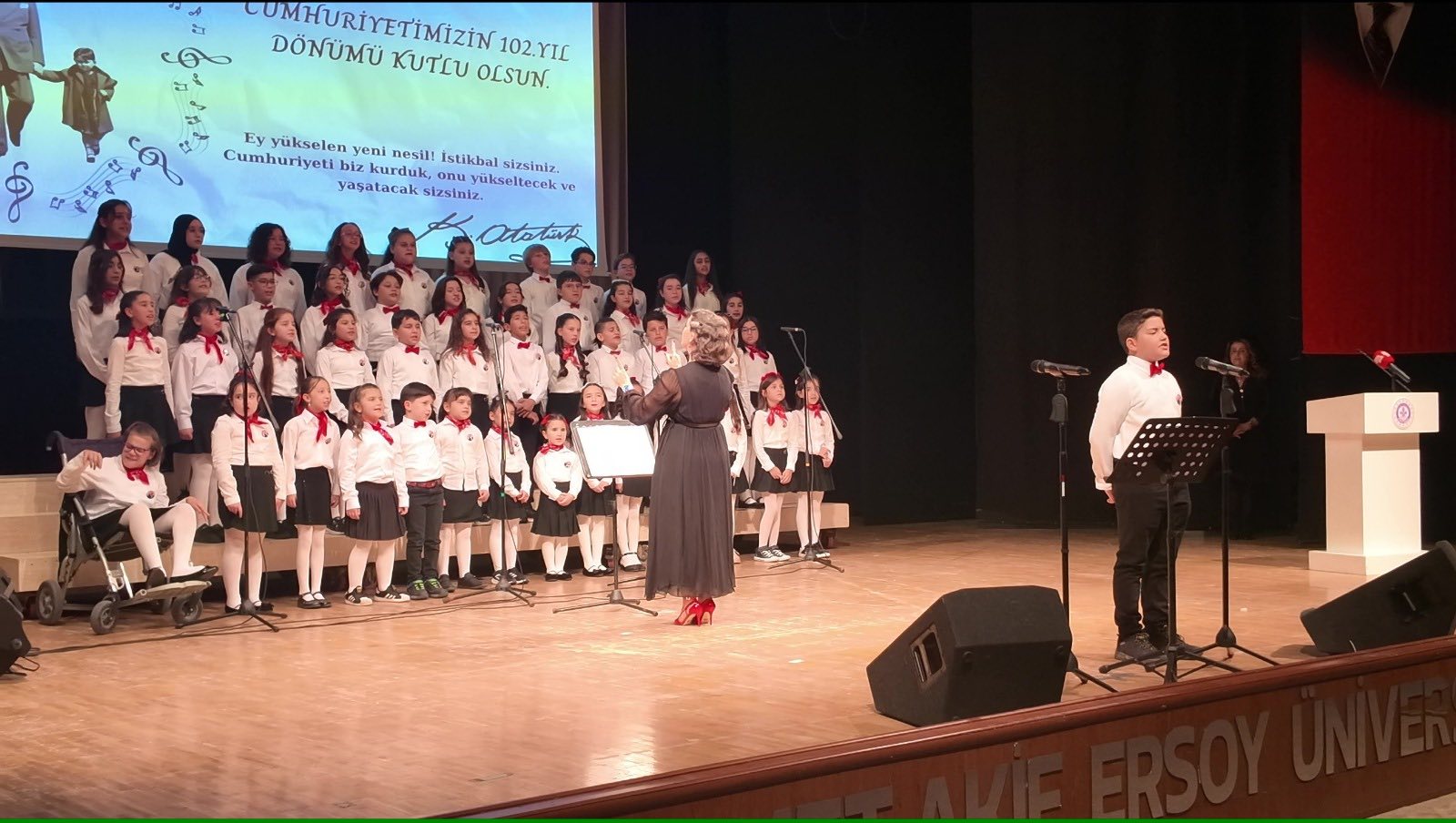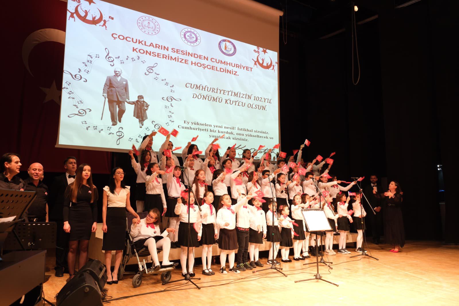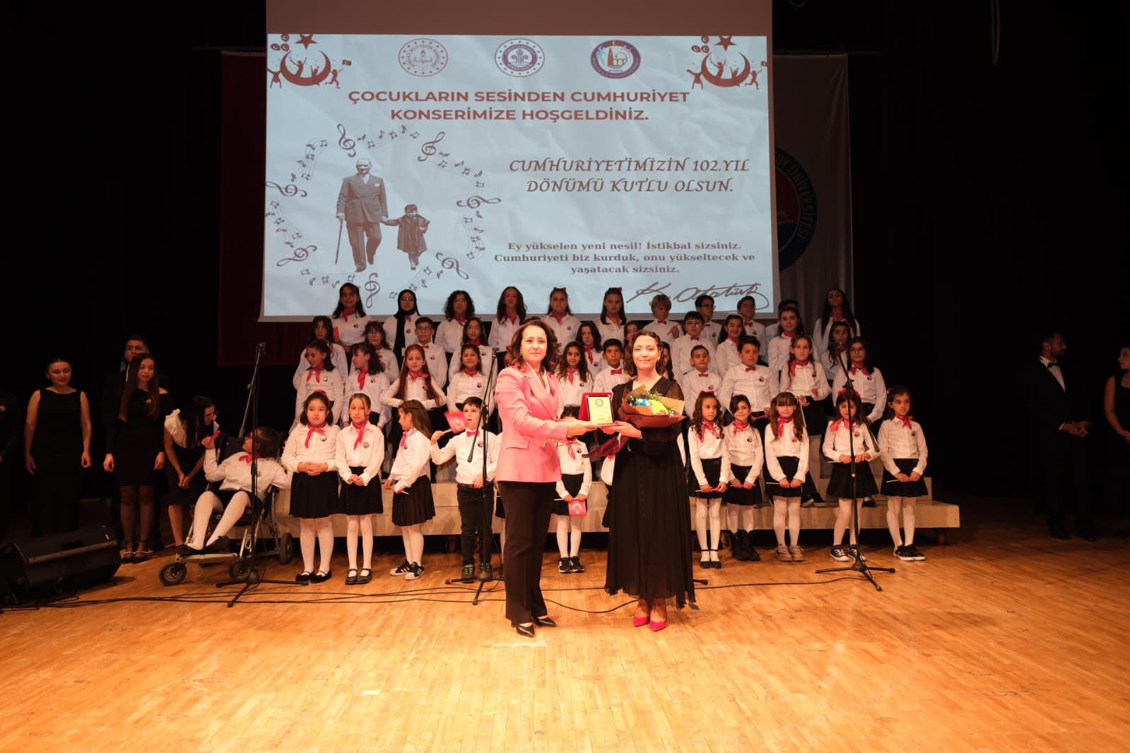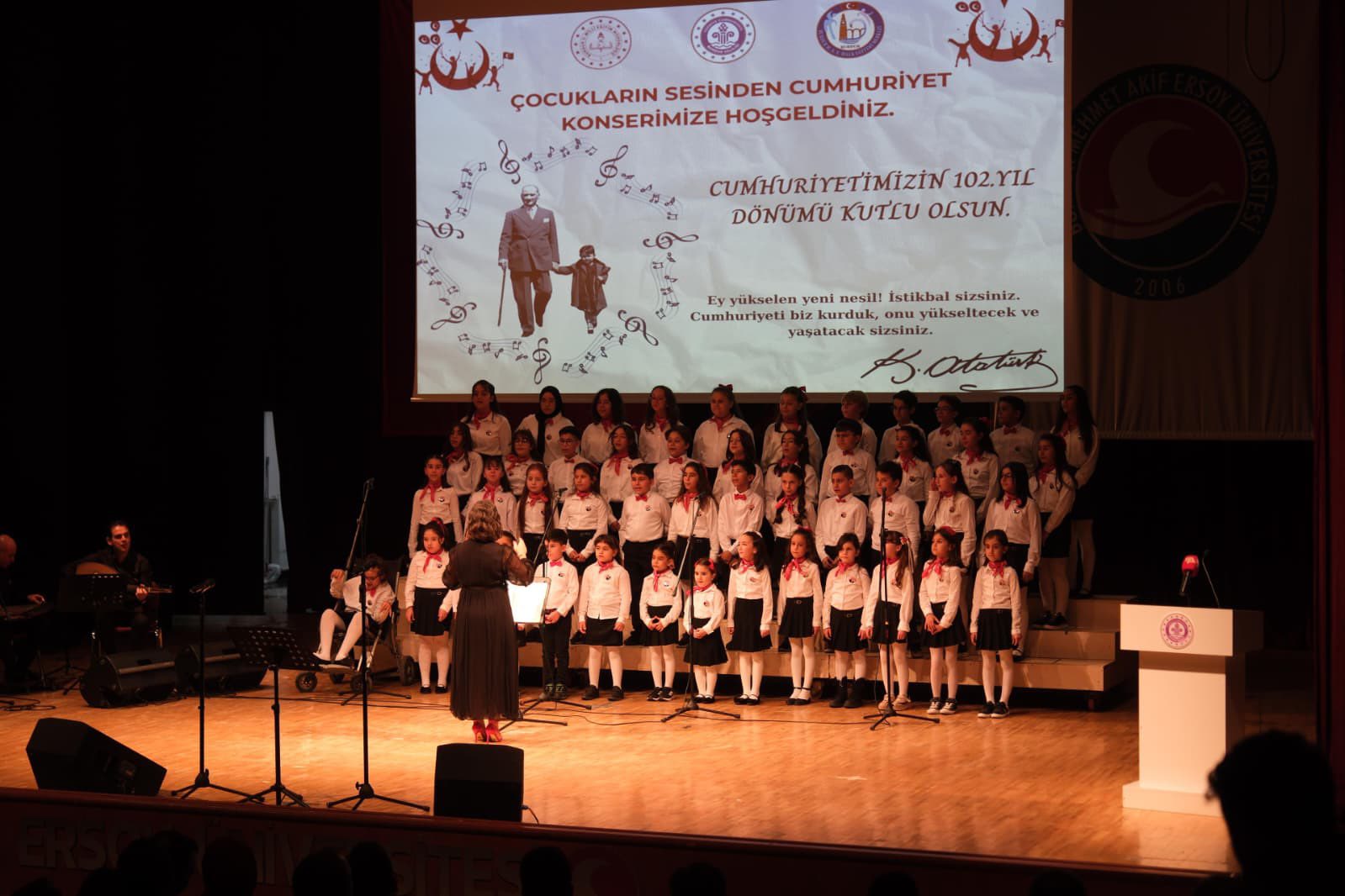 Burdur Mehmet Akif Ersoy Üniversitesi Konferans ve Sergi Salonu’nda düzenlenen etkinliğe, Burdur Valisi Tülay Baydar Bilgihan, mülki ve askeri erkân, il protokolü ve çok sayıda vatandaş katıldı. Cumhuriyetimizin 102. yılına özel hazırlanan konserde, çocuklar marşlar ve Cumhuriyet temalı şarkılar seslendirdi.