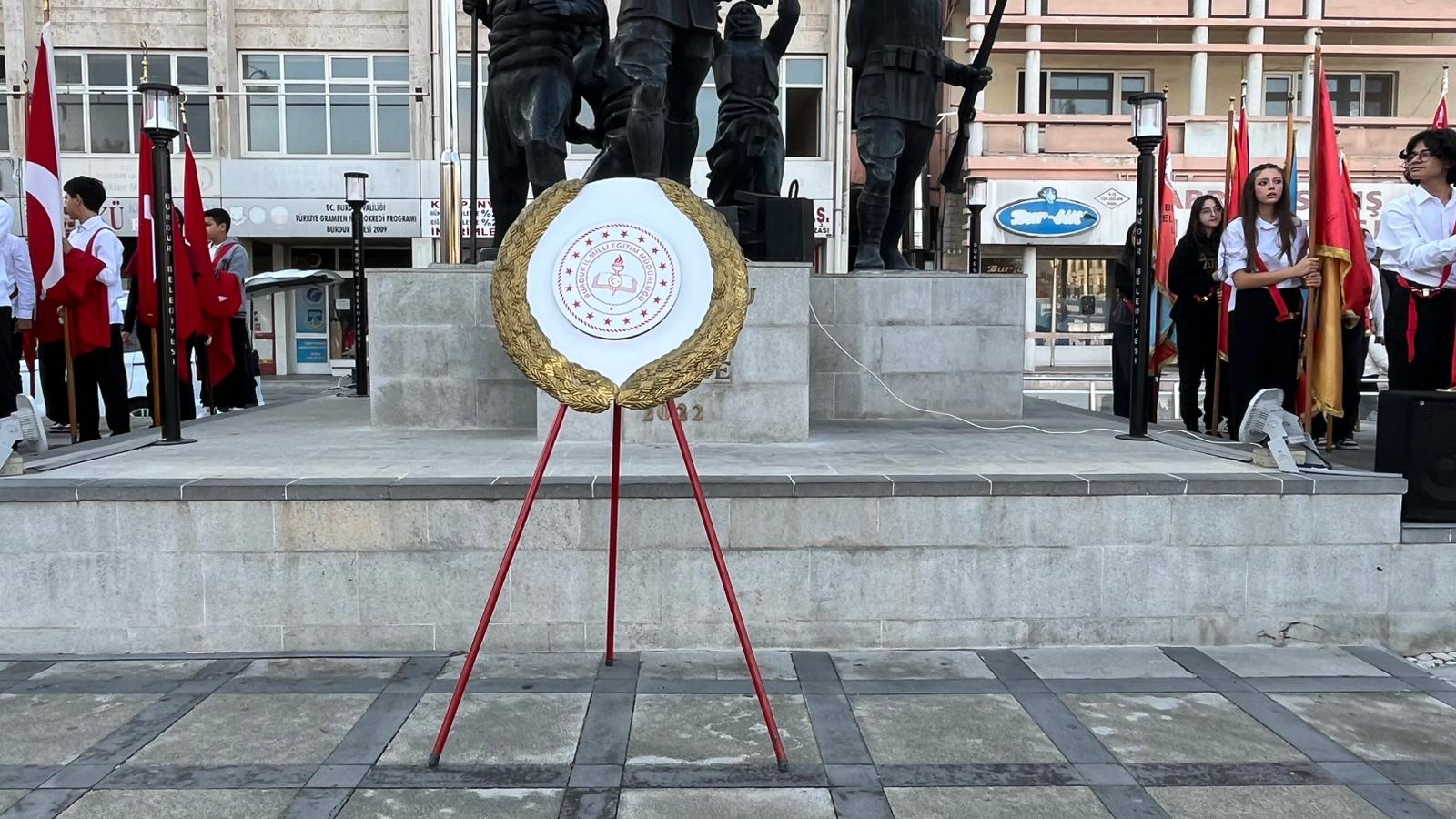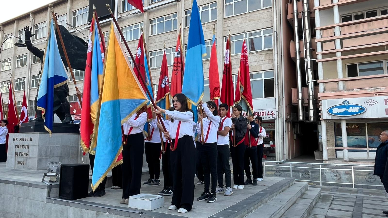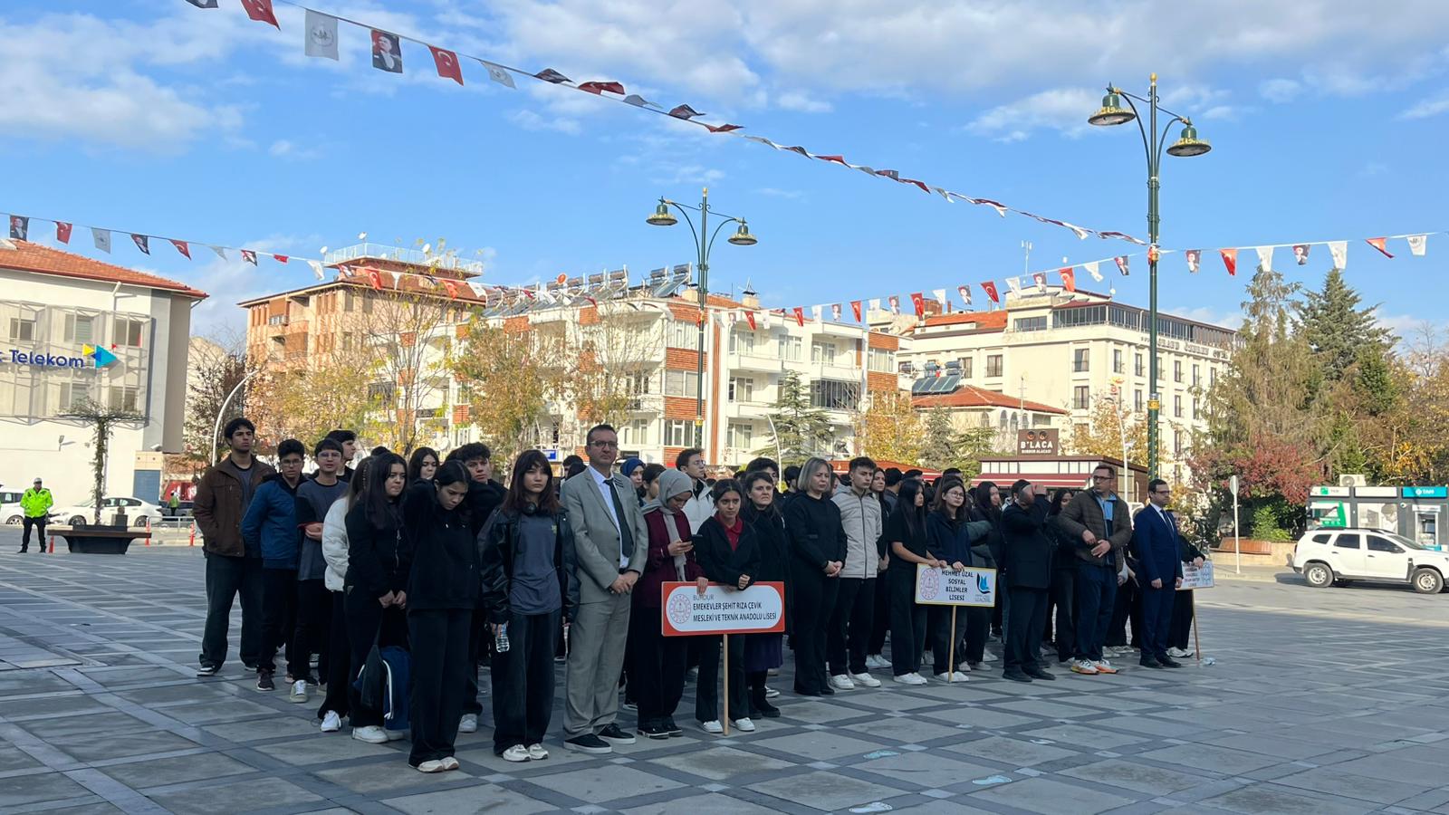 Saat 10.00’da öğretmenler ve öğrencilerin katılımıyla başlayan tören, saygı duruşu ve İstiklal Marşı ile başladı. Ardından çelenk sunumu gerçekleştirildi.