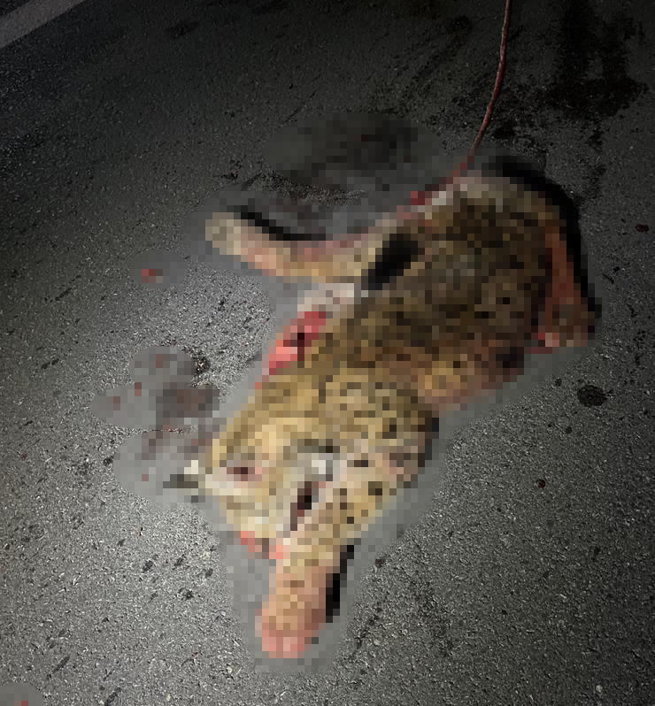 Burdur'da otomobilin çarptığı koruma altındaki vaşak telef olurken ekipler tarafından inceleme yapıldı.