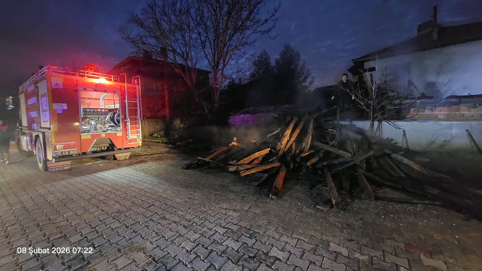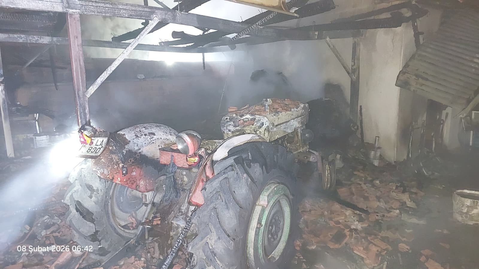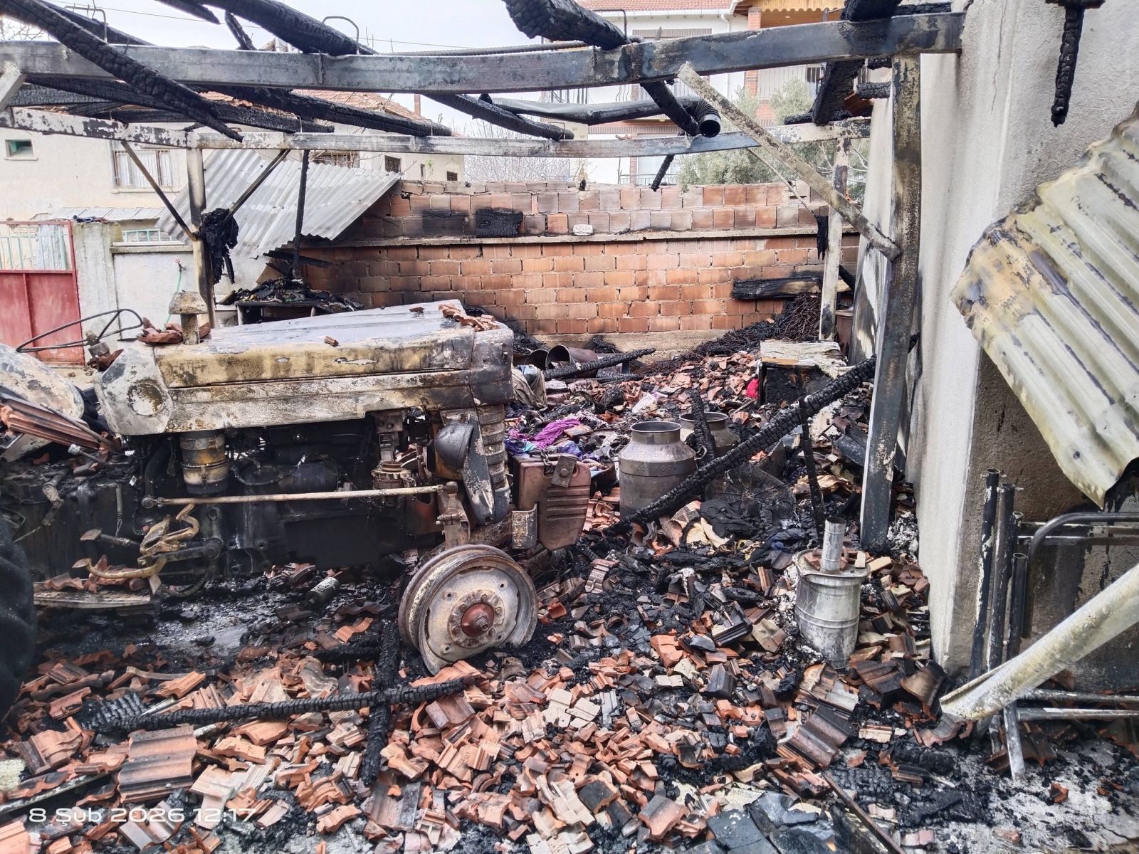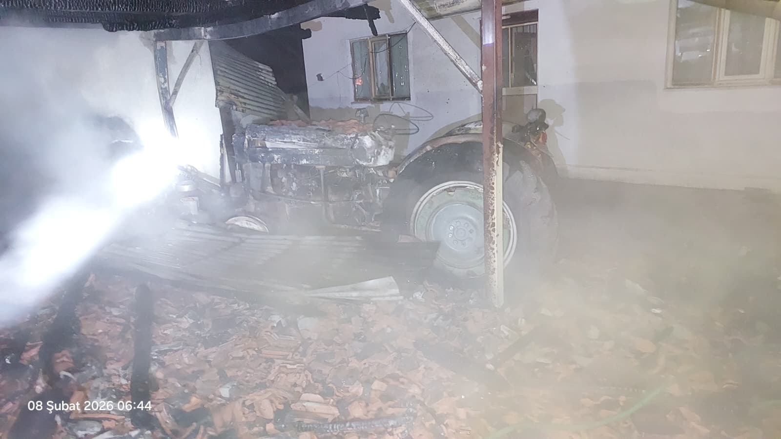 Yangını görenlerin ihbarı üzerine olay yerine jandarma ve itfaiye ekipleri sevk edildi. Yangın ekiplerin müdahalesi ile söndürülürken, yangında odunluk ve traktör küle döndü.