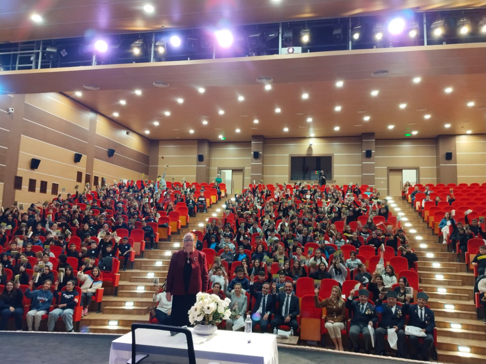 Kent genelindeki çeşitli okullardan gelen yaklaşık 400 öğrenciye, öğretmenler ve Gaziler de eşlik etti. Etkinlik boyunca büyük bir coşku yaşanırken, Kalıpçı konuşmasında çocukluğun insan hayatındaki yerinden, hayal etmenin ve kitap okumanın kişisel gelişimdeki rolünden söz etti. Söyleşi sırasında, Mustafa Kemal Atatürk’ün yaşamından paylaştığı özel anılarla öğrencilere ilham veren yazar, özellikle Atatürk ile bir İngiliz general arasında geçen etkileyici diyaloğu anlatarak salonda duygu dolu anların yaşanmasını sağladı.