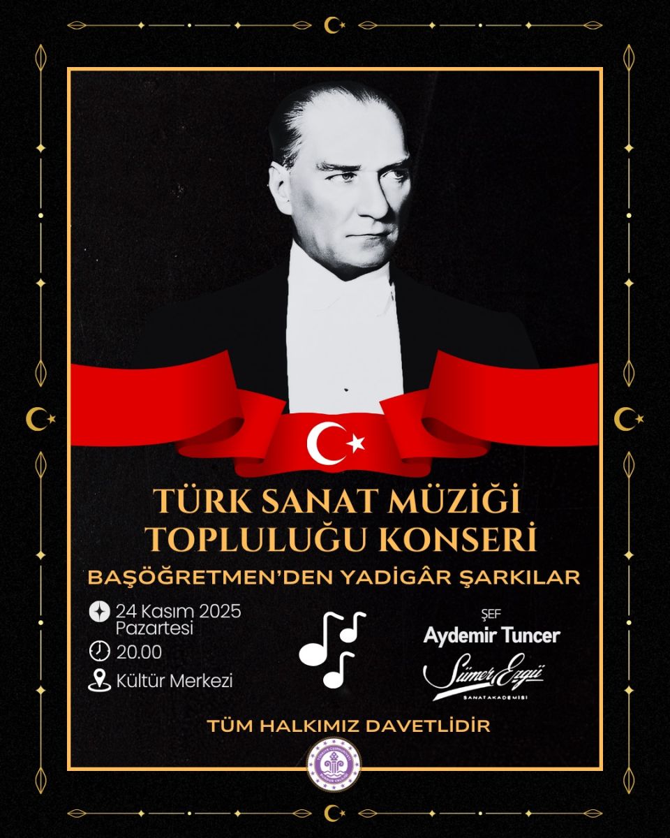 Sümer Ezgü Sanat Akademisi bünyesinde çalışmalarını sürdüren Türk Sanat Müziği Topluluğu, “Başöğretmen’den Yadigâr Şarkılar” adlı özel konserle müzikseverlerle buluşmaya hazırlanıyor.