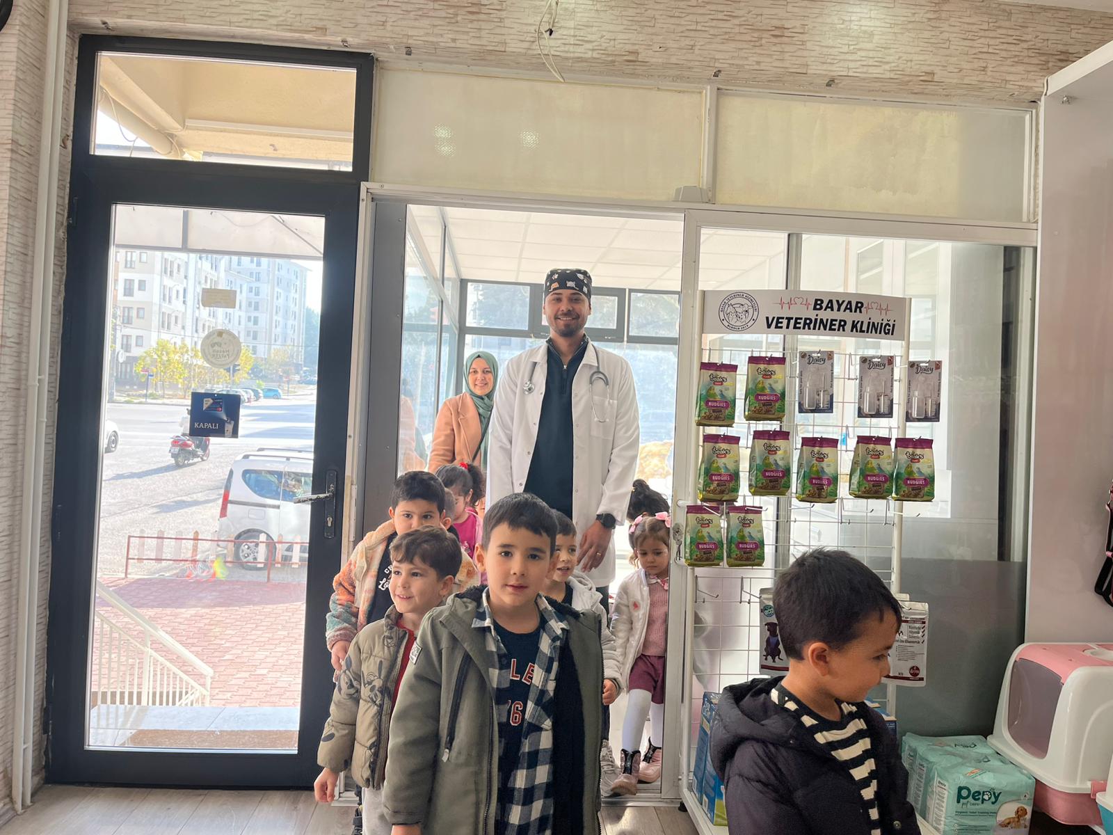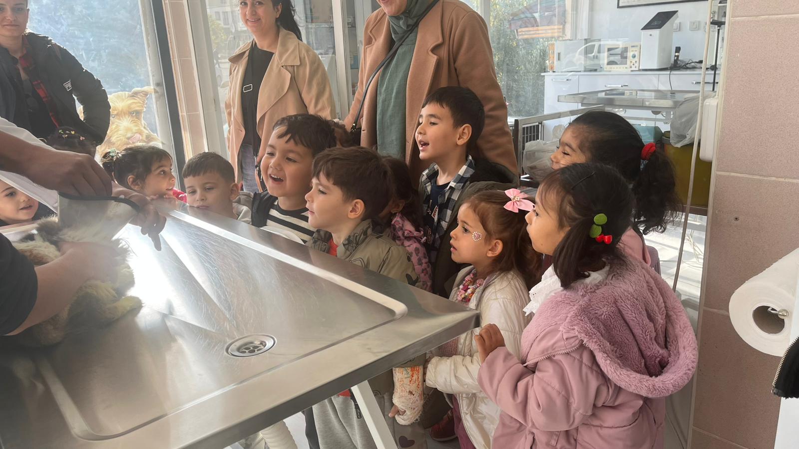 Ziyaret sırasında öğrenciler veteriner hekimlik mesleğini yakından tanıma fırsatı bulurken, Bayar miniklere mesleğin avantajları, zorlukları ve hayvan sevgisinin önemi üzerine değerli bilgiler aktardı.