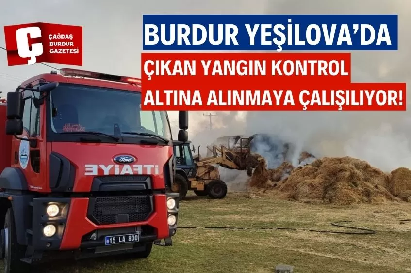 BURDUR'UN YEŞİLOVA İLÇESİNDE SAMAN BALYASI YANGINI: İTFAİYE EKİPLERİ MÜDAHALE EDİYOR